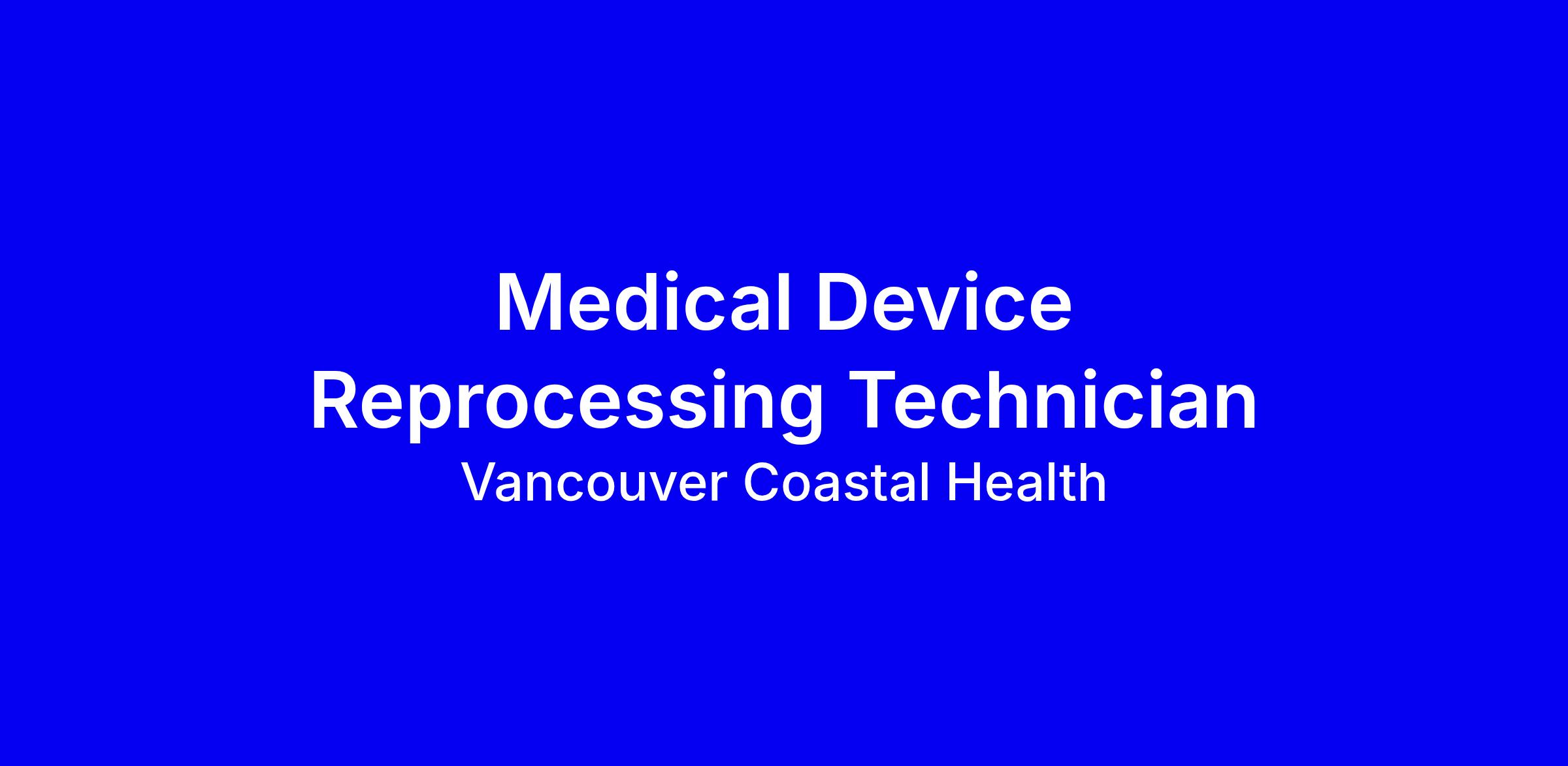 Vancouver Coastal Health is seeking a temporary on site Medical Device Reprocessing Technician to decontaminate, inspect, test, assemble, package, wrap, sterilize and distribute hospital products including simple and complex instruments, linen and equipment for patient care in the operating rooms and other areas. The role also includes restocking shelving, minor clerical duties, and providing input on patient observations to the unit team. Requirements include Grade 12, a recognized Medical Device Reprocessing course, and at least one year of related experience or an equivalent mix of education and training; strong knowledge of surgical terminology, math aptitude, communication, equipment operation, and physical stamina. Apply via the Internal Career Portal before the closing date; emphasize MDR coursework, relevant hands-on experience, and willingness to work changing hours; a Criminal Records Check may be required; internal posting only; VCH champions diversity and inclusion.