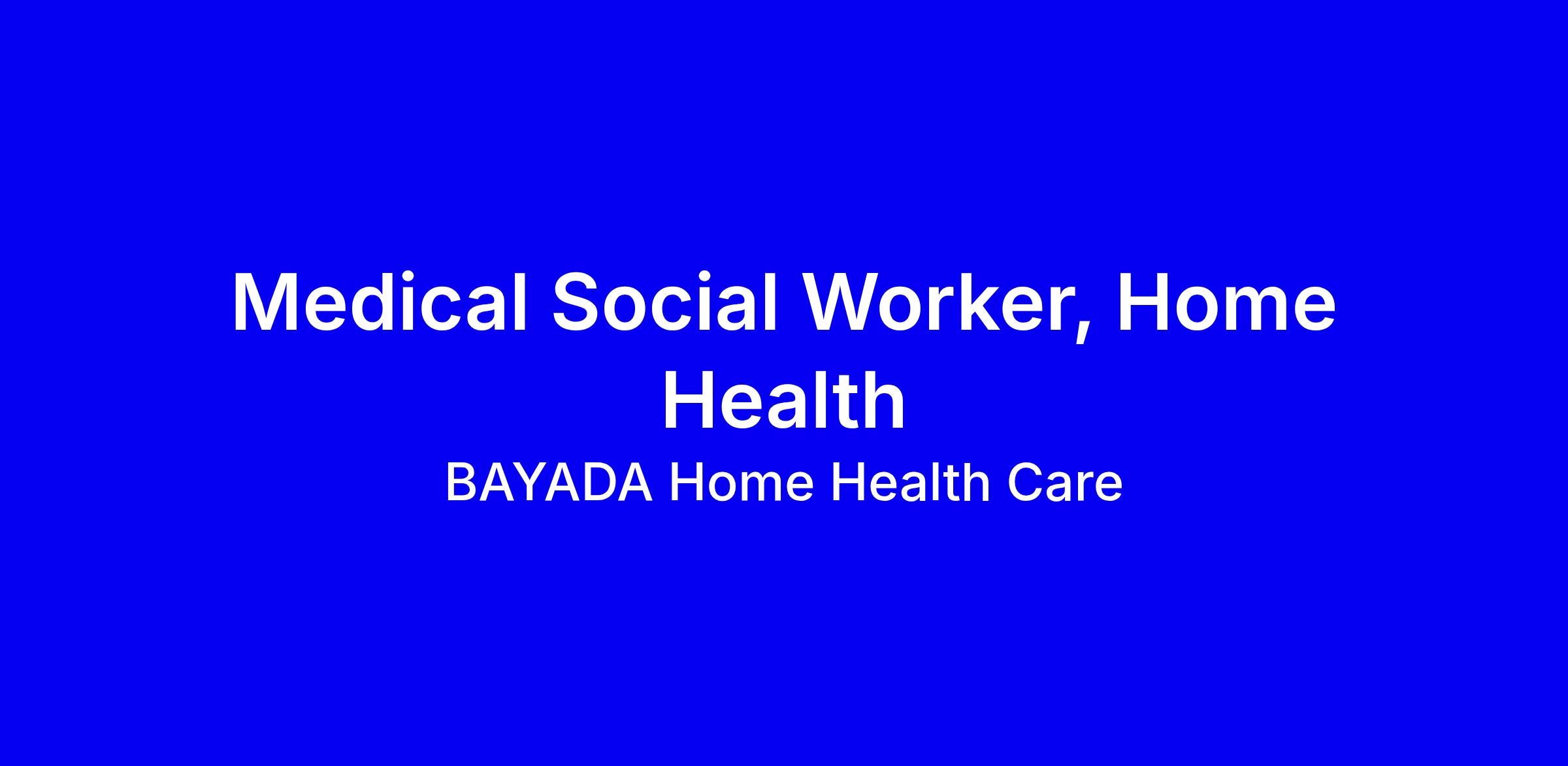Prior home care experience preferred, but not required. As a Medical Social Worker, you will be an integral member of a multi-disciplinary health care team that provides skilled nursing and rehabilitative care to clients, affording them the opportunity to receive the medical care required to remain at home.