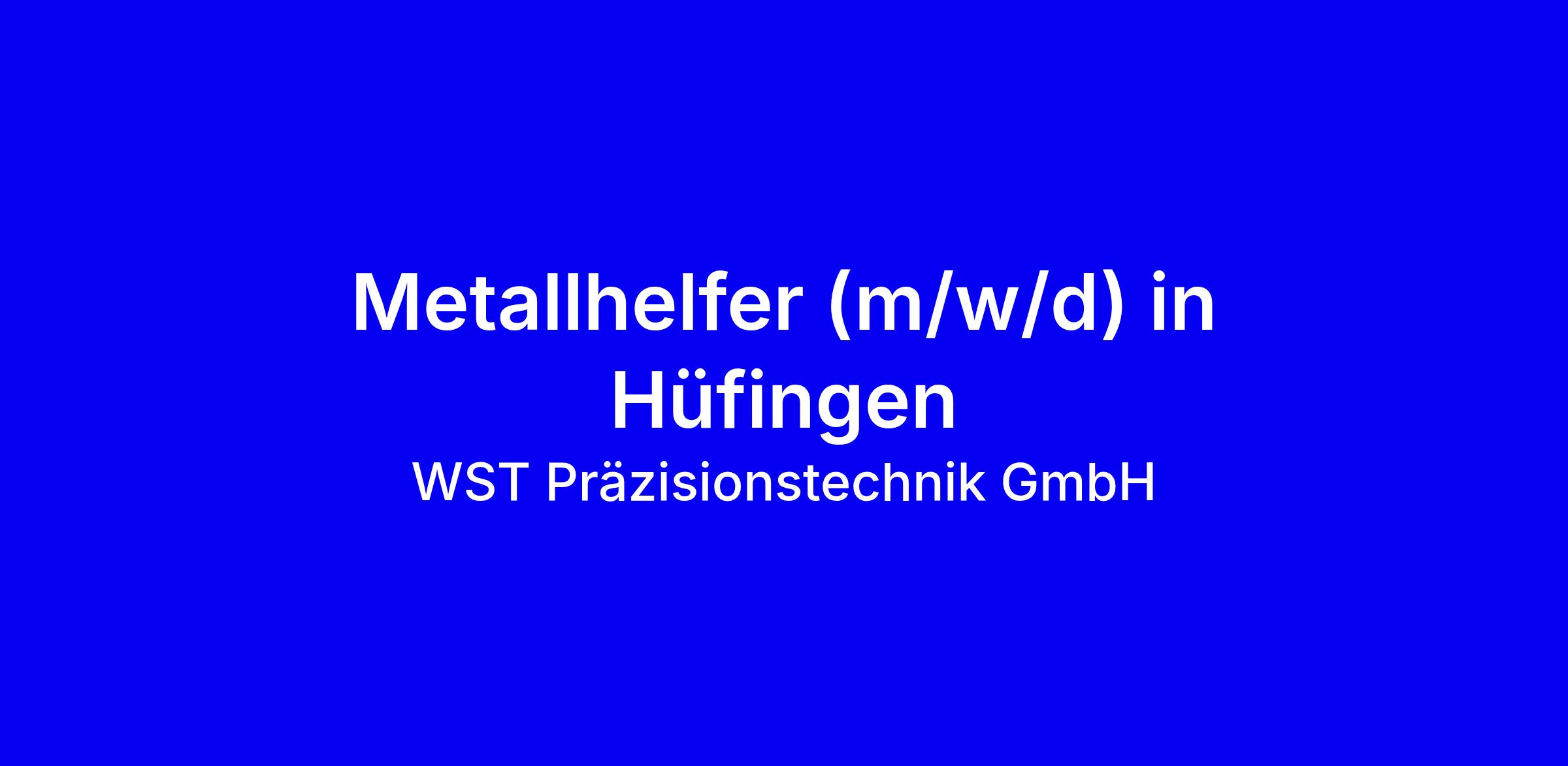 Bei WST Präzisionstechnik GmbH in Hüfingen wartet eine praxisnahe Position als Metallhelfer (m/w/d) im Umfeld hochwertiger Dreh- und Frästeile. Zu Ihren Aufgaben gehören Endkontrollen und Messungen, Verpacken und Umpacken, Sichtkontrollen auf Beschädigungen, Nacharbeiten wie Entgraten, Bürsten und Reinigen sowie das Montieren von Bauteilen. Gesucht werden technisches Verständnis, Bereitschaft zur Schichtarbeit und eine ausgeprägte Qualitätsorientierung. Der Arbeitgeber bietet attraktive Vergütung, hervorragende Weiterbildungsmöglichkeiten, eine umfassende Einarbeitung durch ein Patensystem, ein modernes Arbeitsumfeld sowie Zusatzangebote wie Firmenfitness, Jobrad, Kantine, Boni und Firmenevents. Bewerben Sie sich jetzt über den Link oder per E Mail an [email protected] und zeigen Sie, wie Ihre Motivation und Ihre praktischen Fähigkeiten zur Kultur von Präzision und Leidenschaft passen.