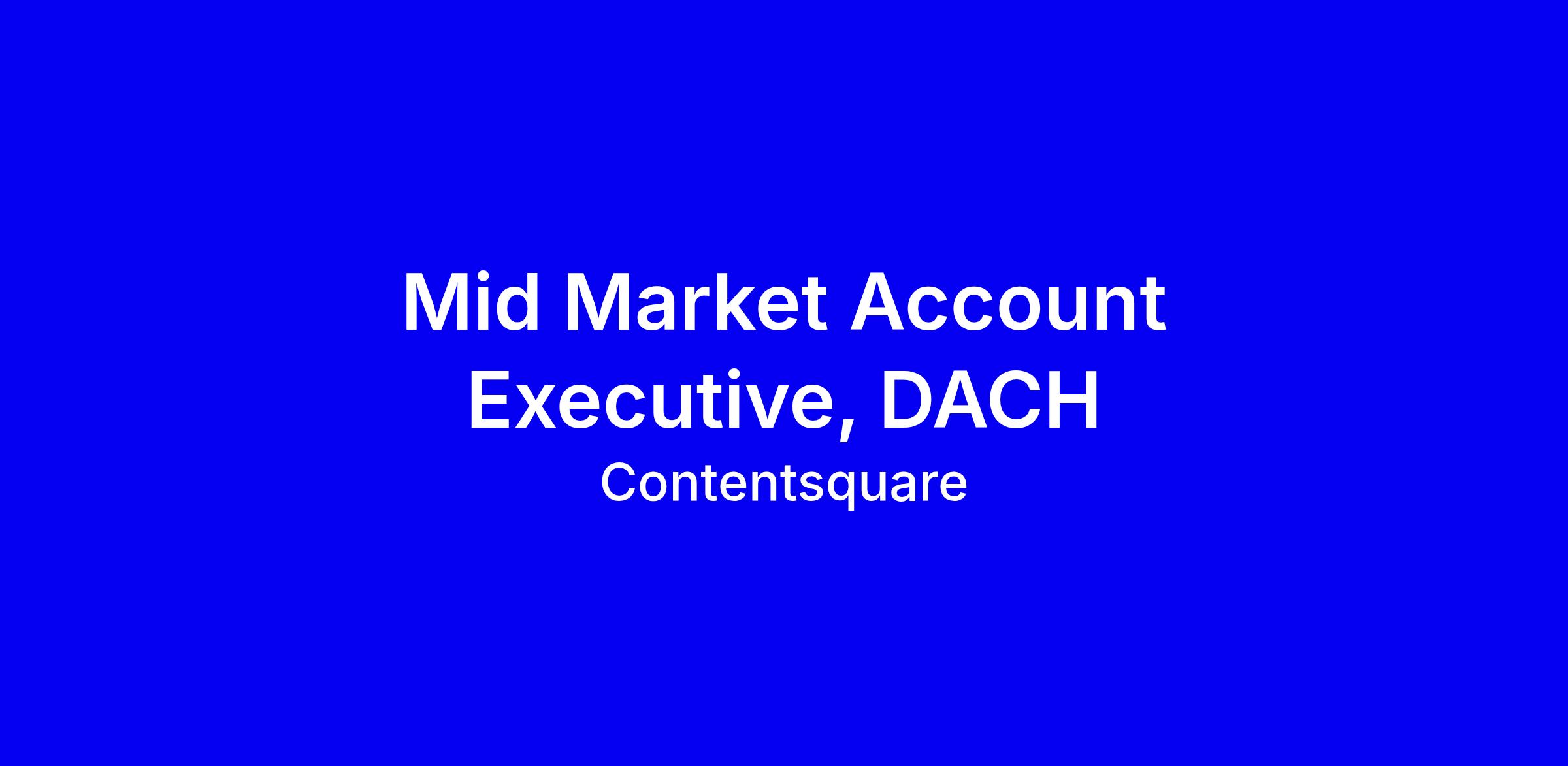 Contentsquare is the all-in-one experience intelligence platform designed to be easily used by anyone who cares about digital journeys. With our flexible and scalable platform, organizations quickly get a deep understanding of their customers’ whole online journey.We are a global leader in the experience analytics space, with a growing presence across 15 offices worldwide. We’re here to stay—and we’re looking for team members who are excited to drive impact and help us scale even further.Our aim is to create an inclusive workplace where everyone learns and succeeds. Contentsquare has built a community of individuals who are daring, understanding, and deliberate. We invite you to join us in making the complex simpler—for our customers, their customers, and each other.Important note: Be careful of scammers pretending to be from Contentsquare. We will never ask for money or contact you through random texts. For more information, visit our careers blog.About the jobAs a Mid Market Account Executive at Contentsquare in the DACH region, you are responsible for driving new business within a defined portfolio of mid-sized enterprises. You own the full sales cycle and act as a trusted advisor to your customers. Your mission is to generate predictable revenue growth, expand our footprint across the DACH market, and position Contentsquare as a strategic partner. You operate in a fast-paced, high-performance SaaS environment where execution discipline, forecasting accuracy, and commercial ownership are critical to success.