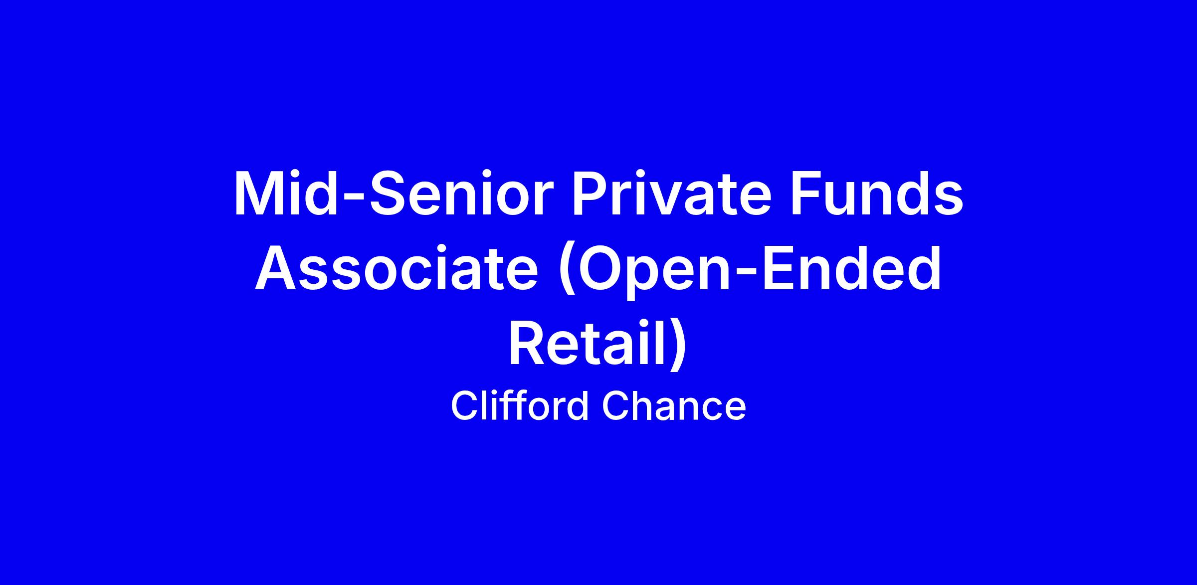 Clifford Chance’s market leading private funds group in London is seeking a mid-senior associate to work on open-ended funds for private wealth investors, including ELTIFs and Part II UCIs, spanning structuring, launch and ongoing operations with a truly global team. You will draft offering memoranda and subscription agreements, coordinate with regulatory specialists on ELTIF and AIFMD requirements, manage marketing registrations, negotiate seed investor and distributor terms, and provide day to day advisory on governance and compliance while contributing to know-how and thought leadership. Success comes from strong fund formation drafting, cross border collaboration, and a client focused mindset with business development flair and mentoring. To apply, tailor your CV to highlight open ended fund experience, include concrete deal examples, demonstrate regulatory and cross jurisdictional work, client relationship skills, and readiness for hybrid in office work at least 50 percent.