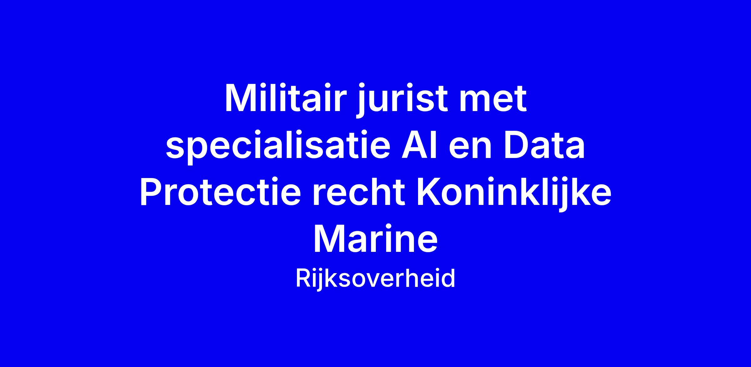Deze vacature zoekt een militair jurist met specialisatie AI en Data Protectie recht voor de Koninklijke Marine, in Den Helder. Als Officier Jurist geef je advies over AI, data en privacy en werk je samen met data scientists in het Maritiem Data Science Center. Je begint in AI/Cyber en privacy en werkt aan projecten die internationaal recht en cyber raken. Vereisten: wo-diploma in rechten en bachelor Nederlands recht, ruime AI-ervaring en kennis van AI Act en Data Act; cyber law is een pre. Officierstraining en mogelijke uitzending horen bij de functie. Sollicitatiegesprekken zijn 10 april 2026. Tips: koppel je kandidatuur aan concrete AI/privacy-projecten en laat meetbare resultaten zien.