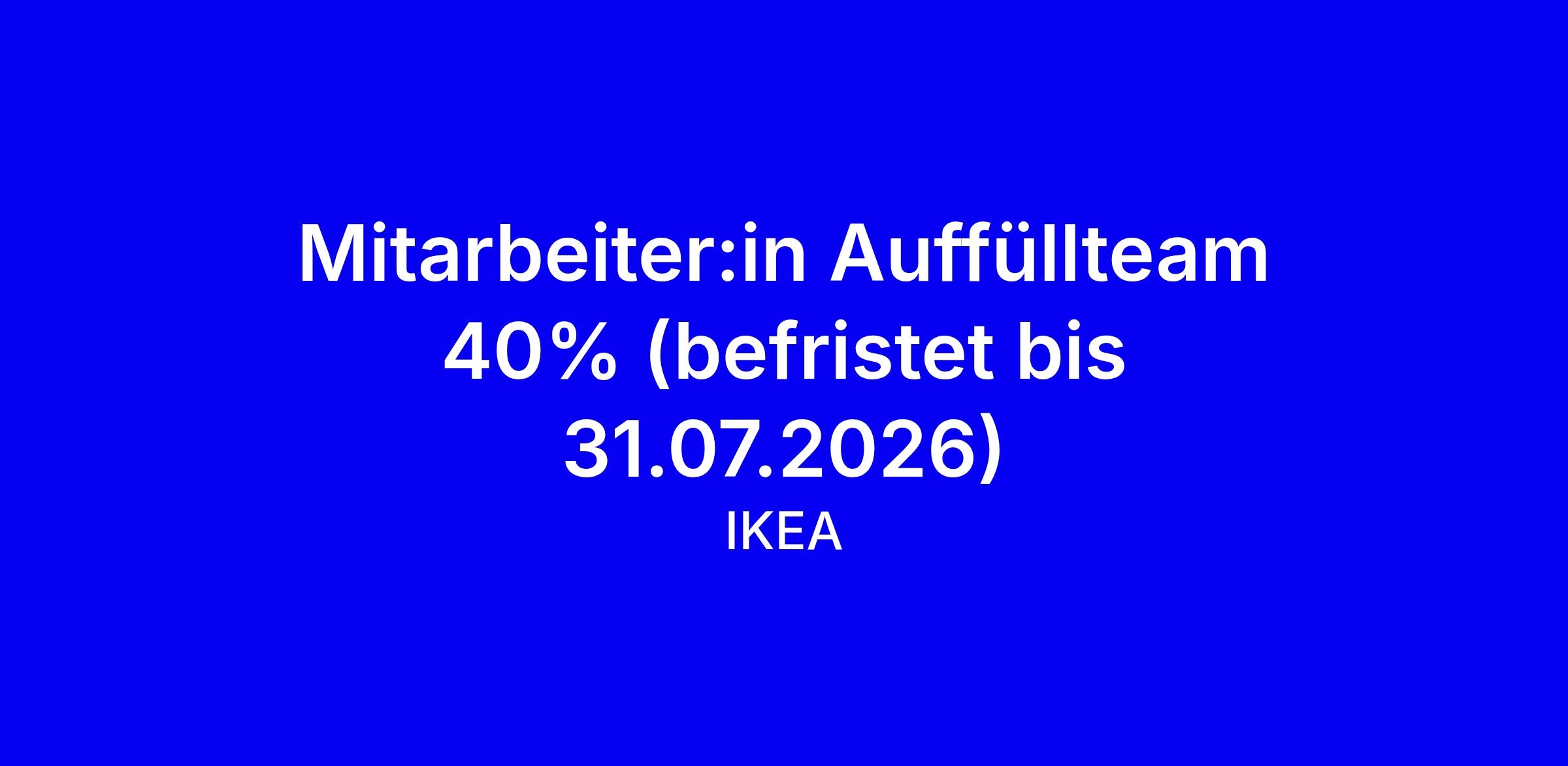 Diese befristete Teilzeitstelle (40%) als Mitarbeiter:in Auffüllteam in St. Gallen richtet sich an Organisationstalente mit Sinn für Logistik und Teamarbeit. Die Aufgabe ist das systematische Auffüllen von Waren in der Abteilung Logistik, vor Ort (onsite), mit Vertragslauf bis 31.07.2026. IKEA betont eine Kultur der Vielfalt, Lernbereitschaft, Leidenschaft für Einrichtung und den gemeinsamen Auftrag, vielen Menschen einen besseren Alltag zu gestalten. Wichtig sind Zuverlässigkeit, Belastbarkeit, Flexibilität sowie Freude an der Arbeit im Team. So bewerben Sie sich: Passen Sie Ihren Lebenslauf auf Logistik und Einzelhandel an, liefern Sie konkrete Beispiele für Teamleistung und Effizienz, zeigen Sie Ihre Bereitschaft zur Teilzeit- und Befristung und beachten Sie die Frist 15. März 2026.
