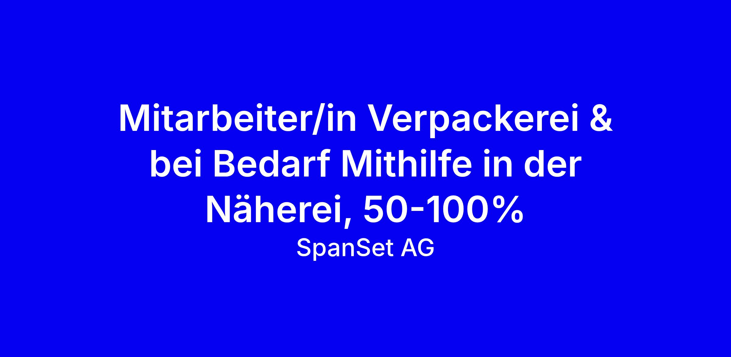 SpanSet AG sucht eine/m Mitarbeiter/in für Verpackerei und bei Bedarf Mithilfe in der Näherei (50 100%). In dieser vielseitigen Rolle unterstützen Sie den Bereichsleiter in der Verpackerei und helfen gelegentlich in der Näherei; wichtig ist eine engagierte Persönlichkeit mit Humor und positivem Denken. Aufgaben: Binden, Verpacken und Etikettieren von Spanset-Artikeln, gelegentliches Nähen von Zurr- und Hebegurten an Industrie-Nähautomaten sowie allgemeine Betriebsarbeiten. Anforderungen: handwerkliches Geschick, Freude am Verpacken, selbstständige und genaue Arbeitsweise, Flexibilität, körperliche Belastbarkeit, Teamfähigkeit und gute Deutschkenntnisse zum Lesen und Verstehen. Wir bieten ein innovationsgetriebenes Umfeld mit familiärer Kultur, ein engagiertes Team, attraktive Anstellungsbedingungen, überdurchschnittliche Sozialleistungen, moderner Firmensitz und Gratisparkplätze. Bewerben Sie sich mit einem auf Verpackungserfahrung zugeschnittenen Lebenslauf, betonen Sie Ihre Nähkenntnisse, Zuverlässigkeit und Teamgeist, fügen Sie Motivationsschreiben hinzu und nennen Sie Verfügbarkeit sowie Sprachkenntnisse.