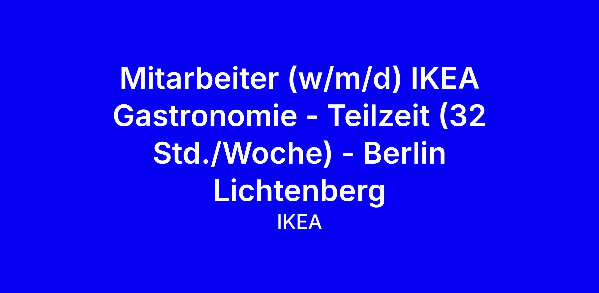 Als Mitarbeiter in der IKEA Gastronomie in Berlin-Lichtenberg arbeitest du Teilzeit (32 Std./Woche) im Bereich IKEA Food, bist vor Ort und arbeitest befristet; die Stelle umfasst den Restaurantbetrieb, mit Fokus auf Service und Teamarbeit. IKEA setzt auf Werte wie Vielfalt, Authentizität und Lernfreude, und die Vision, vielen Menschen den Alltag schöner zu gestalten, zieht sich durch die Kultur. Wichtig sind Engagement, Kundenorientierung, Freude am Arbeiten und Bereitschaft, Neues zu lernen. Tipps: hebe relevante Erfahrungen im Service oder Gastronomie hervor, betone Teamfähigkeit, Zuverlässigkeit und Flexibilität im Schichtbetrieb; erwähne deine Verfügbarkeit in Berlin-Lichtenberg, bereite dich auf die Bewerbungsfrist vor (Deadline 26.02.2026) und weise gegebenenfalls auf deine Mobilität innerhalb Deutschlands hin.