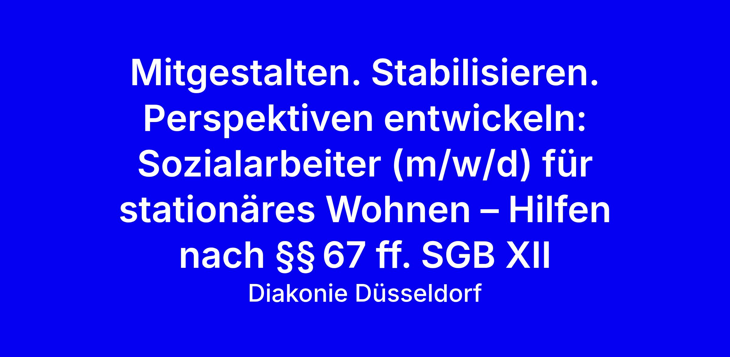 Mitgestalten. Stabilisieren. Perspektiven entwickeln: Sozialarbeiter (m/w/d) für stationäres Wohnen – Hilfen nach §§ 67 ff. SGB XII