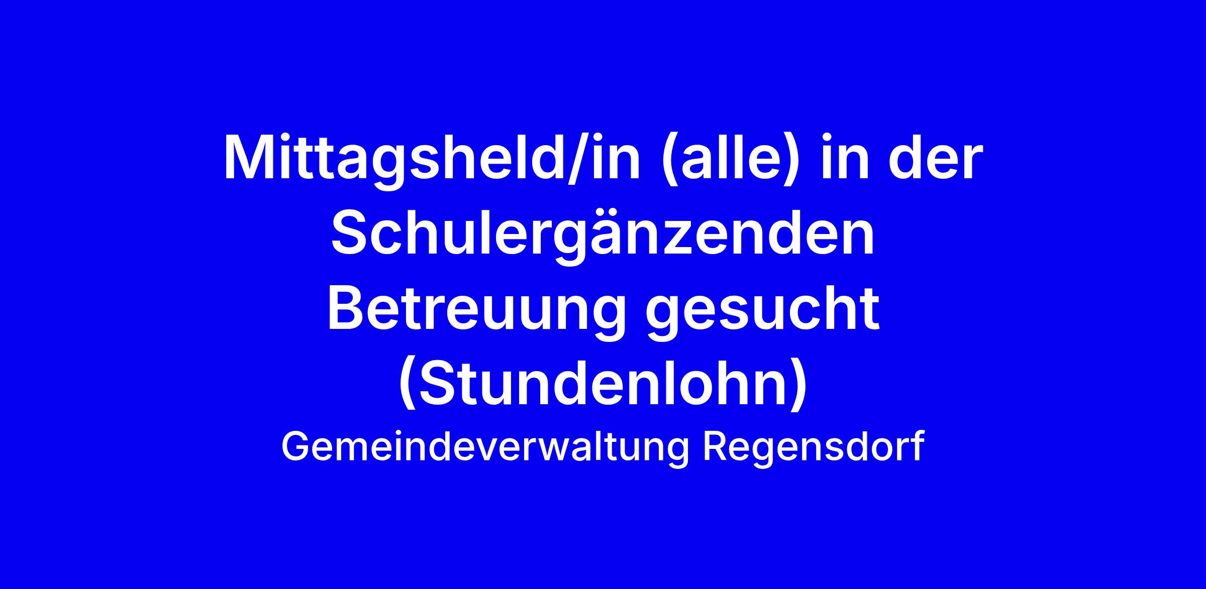 Die Gemeinde Regensdorf sucht eine Mittagsheldin oder einen Mittagshelden für die schulergänzende Betreuung auf Stundenlohnbasis, montags bis freitags von 11:30 bis 14:00 Uhr, vor Ort in Regensdorf. Du begleitest zuverlässig Kindergartenkinder von der Kita in die schulergänzende Betreuung, unterstützt beim Mittagessen und bei einfachen hauswirtschaftlichen Tätigkeiten und sorgst dafür, dass der Mittag sicher, entspannt und fröhlich verläuft. Wichtig sind Freude an Kindern, Ruhe auch in lebhaften Momenten, körperliche Fitness und Zuverlässigkeit. Bei der Bewerbung betone deine Erfahrungen mit Kindern, Teamfähigkeit, Verantwortungsbewusstsein und flexible Einsatzbereitschaft; reiche einen kurzen Lebenslauf ein und nutze Jasmin Heinz als Kontakt unter 044 842 39 62.