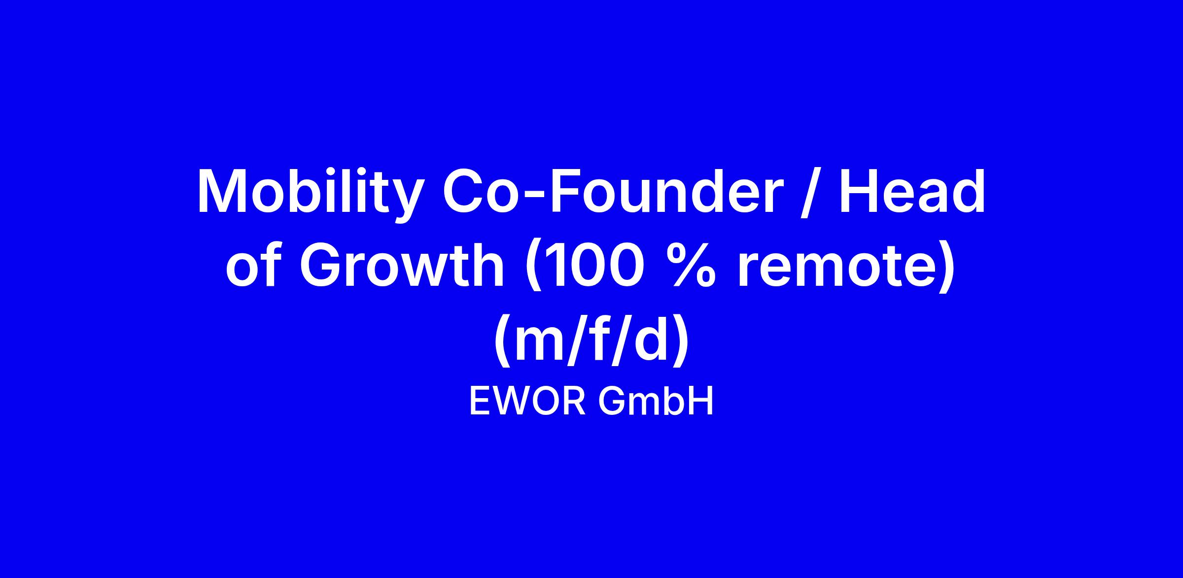 EWOR is seeking ambitious entrepreneurs to co-found and run a Mobility startup as a 100 percent remote fellow, with the option of a salary while you build or up to €500k in funding, plus weekly 1:1 sparring with unicorn founders and access to a premier network of founders, peers, and investors. You will own the venture, receive a tailored development journey, hiring support from a 50,000 strong network, and intensive coaching to reach product-market fit and build a sales and marketing engine, aiming to secure multi-million euro funding within 12 months. Requirements: based in Europe or the Americas or open to relocate, take full ownership to scale to €100M+ in revenues, fluent English. Apply with a clear Mobility thesis, evidence of traction or bold plans, a concise 12 month roadmap, and demonstrated growth or fundraising success, plus leadership and remote collaboration, and show how you will leverage EWOR's network to hire and accelerate.