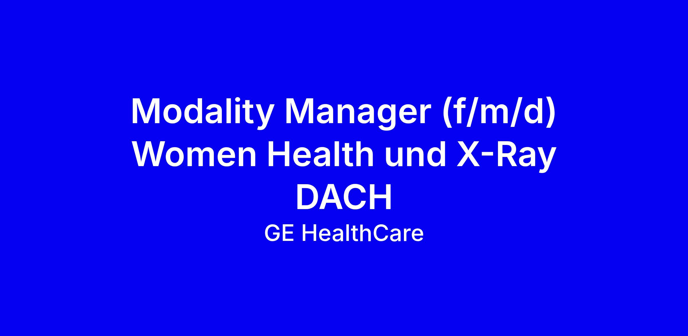 GE HealthCare is looking for a Modality Manager for Women’s Health and X-Ray in the DACH region to define and execute the modality strategy across Mammography, Bone Density and X-Ray, owning pricing, positioning and profitability while driving growth in orders, revenue and margin and ensuring customer satisfaction. You will lead a team of Modality Sales Specialists, align with International Marketing, and ensure compliance with quality and EHS standards. The ideal candidate has extensive MedTech sales or marketing leadership in imaging, deep technical understanding of the three modalities, and a proven track record in strategic selling, tender management, and cross-functional collaboration. To apply, quantify impact on market share and profitability, demonstrate leadership and DACH know-how, and show readiness to work onsite in Zürich; relocation is not provided.