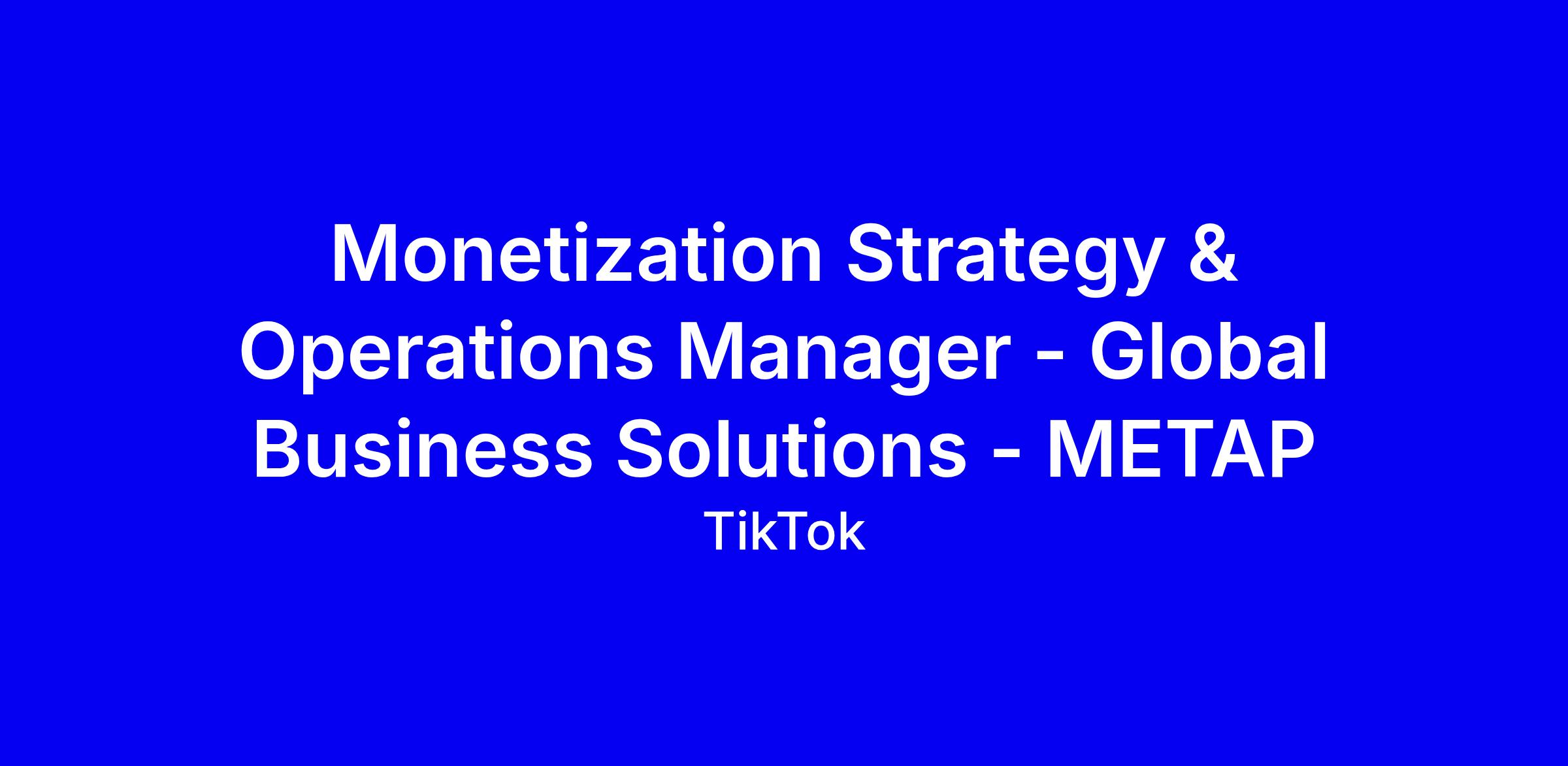 TikTok’s Global Business Solutions Monetization Strategy & Operations role in Dubai is a full time onsite opportunity for an entrepreneurial, data driven leader who can partner with sales leadership and cross functional teams to test assumptions translate large datasets into strategic recommendations and drive growth through dashboards and reporting. The role focuses on Data, Strategy, Reporting and Projects, with responsibilities spanning collaboration with Product, Finance, Creatives, Measurement and Marketing, market sizing, monitoring commercial performance, and weekly deep dives on ad metrics and product. To apply, tailor your resume to show measurable monetization wins, cross functional impact, and advanced analytics; include concrete examples of turning data into growth and highlight your ability to operate independently on global initiatives.
