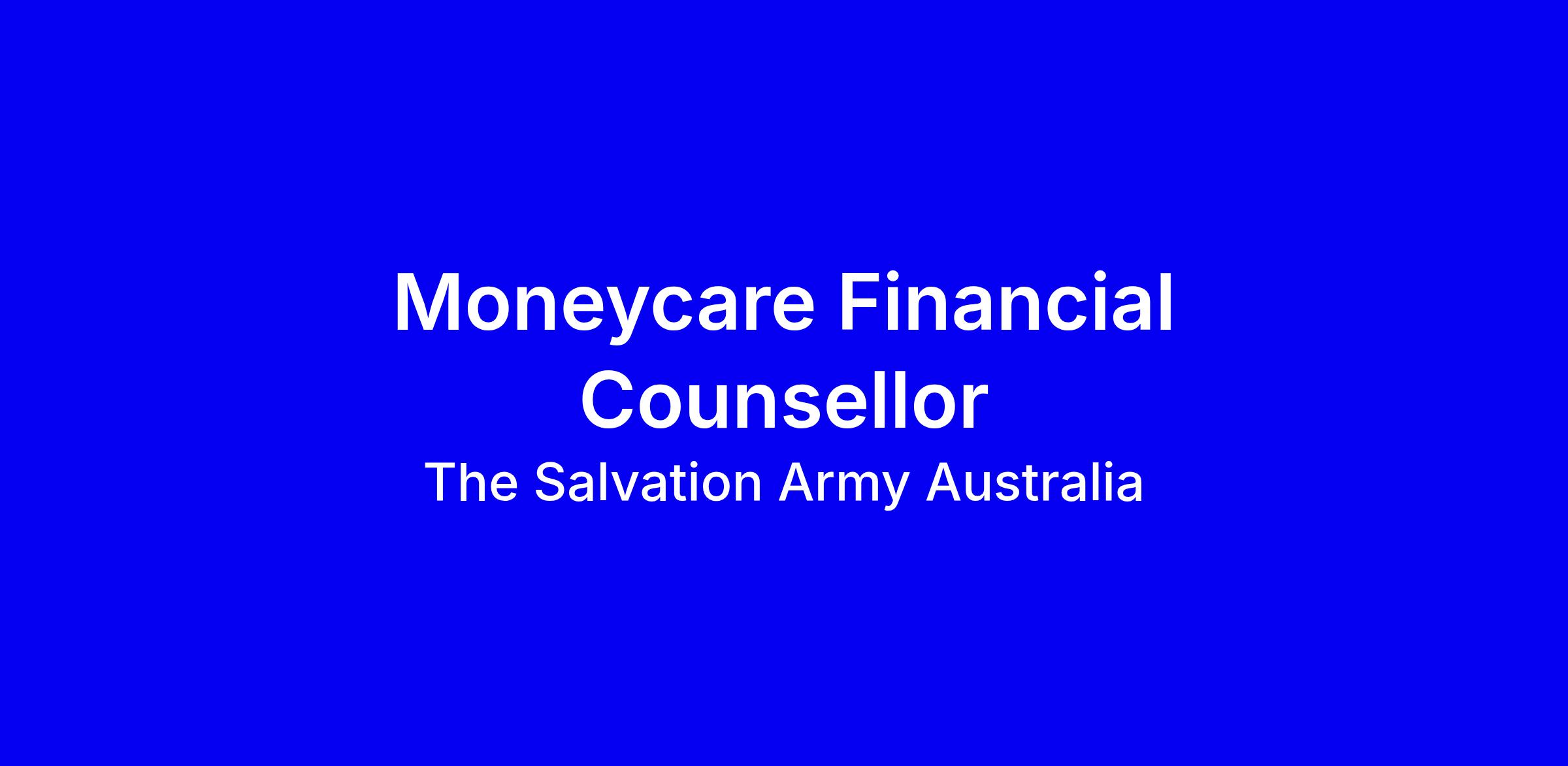 Moneycare is The Salvation Army’s (Salvos) national financial counselling and financial capability program which seeks to alleviate hardship and build long term resilience. The Salvos understands that everyone’s financial situation is different. Our evidence-based methods are professional, caring and have a holistic impact on the lives of those who come to us seeking assistance.