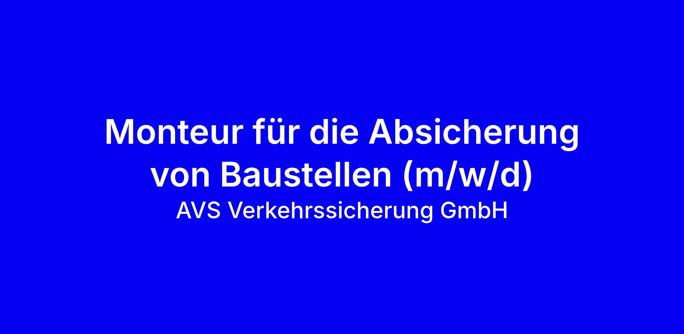 Die AVS Verkehrssicherung GmbH hat ihren Hauptsitz in Leverkusen. Die AVS ist ein führender Anbieter von Verkehrssicherheitslösungen in Deutschland und ist auf die Verkehrssicherung sowie das Verkehrsmanagement in Baustellenbereichen auf Autobahnen, Bundes- und Schnellstraßen sowie für urbane Verkehrsnetze spezialisiert. Mit jahrzehntelanger Erfahrung in der Planung und Umsetzung von temporären Verkehrssicherungsmaßnahmen und einem Team aus hochqualifizierten Fachleuten steht die Sicherheit der Menschen und ein effizienter Verkehrsfluss im Bereich von Straßenbaustellen im Fokus unseres täglichen Handelns.