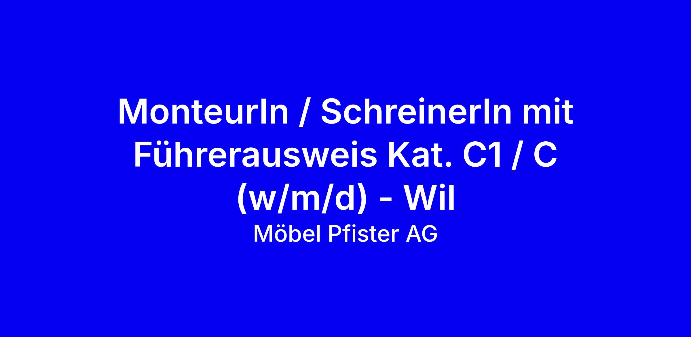 MonteurIn / SchreinerIn mit Führerausweis Kat. C1 / C (w/m/d) - Wil