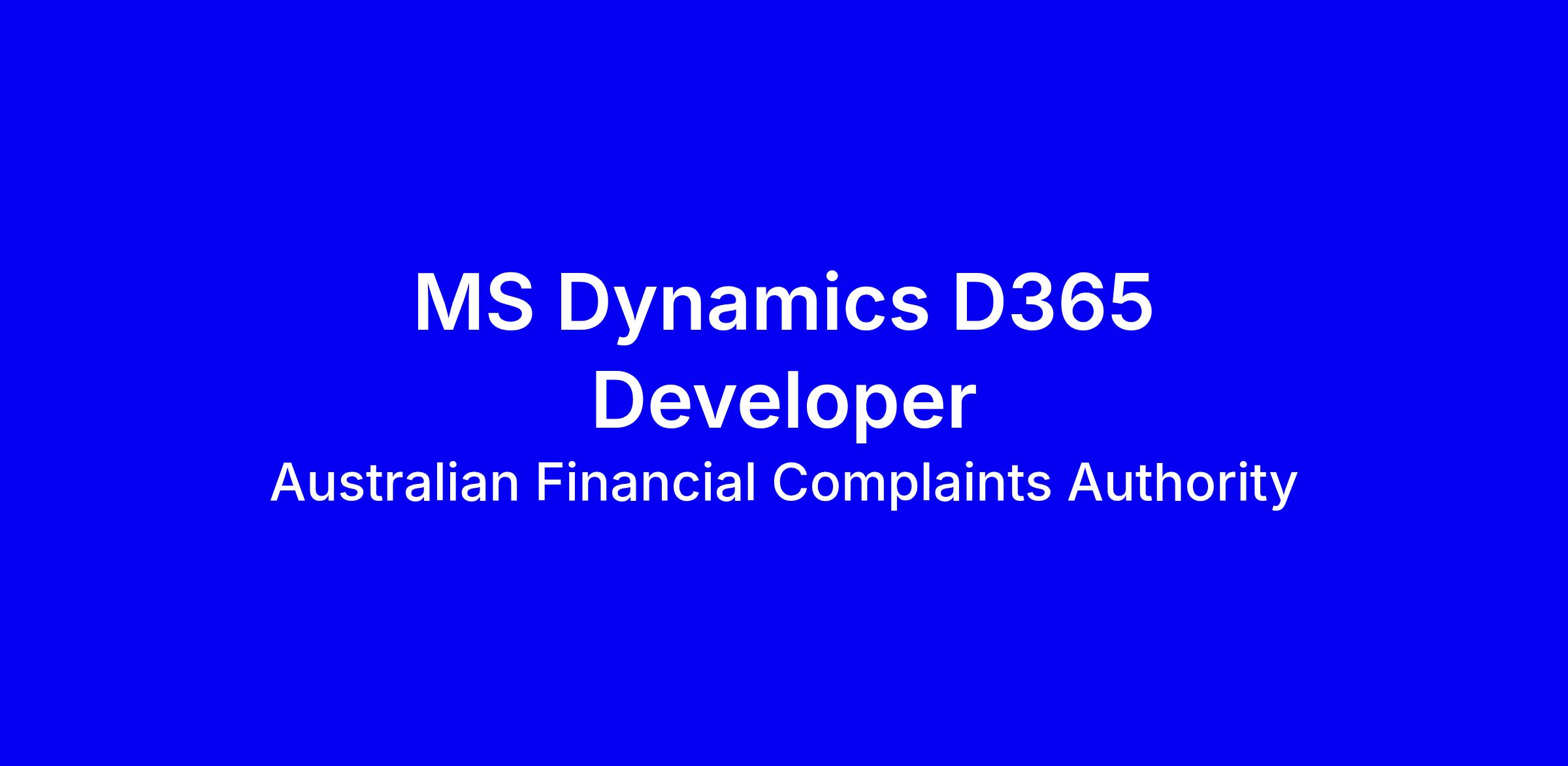 The role of MS Dynamics 365 Developer will be reporting to the Manager - Application Development and will be joining a passionate team at the beginning of their Dynamics 365 journey. This hands-on role will be involved in the post go-live support and development of AFCA's D365 CRM solution, as well as developing and supporting internal applications developed on the Microsoft Power Platform.