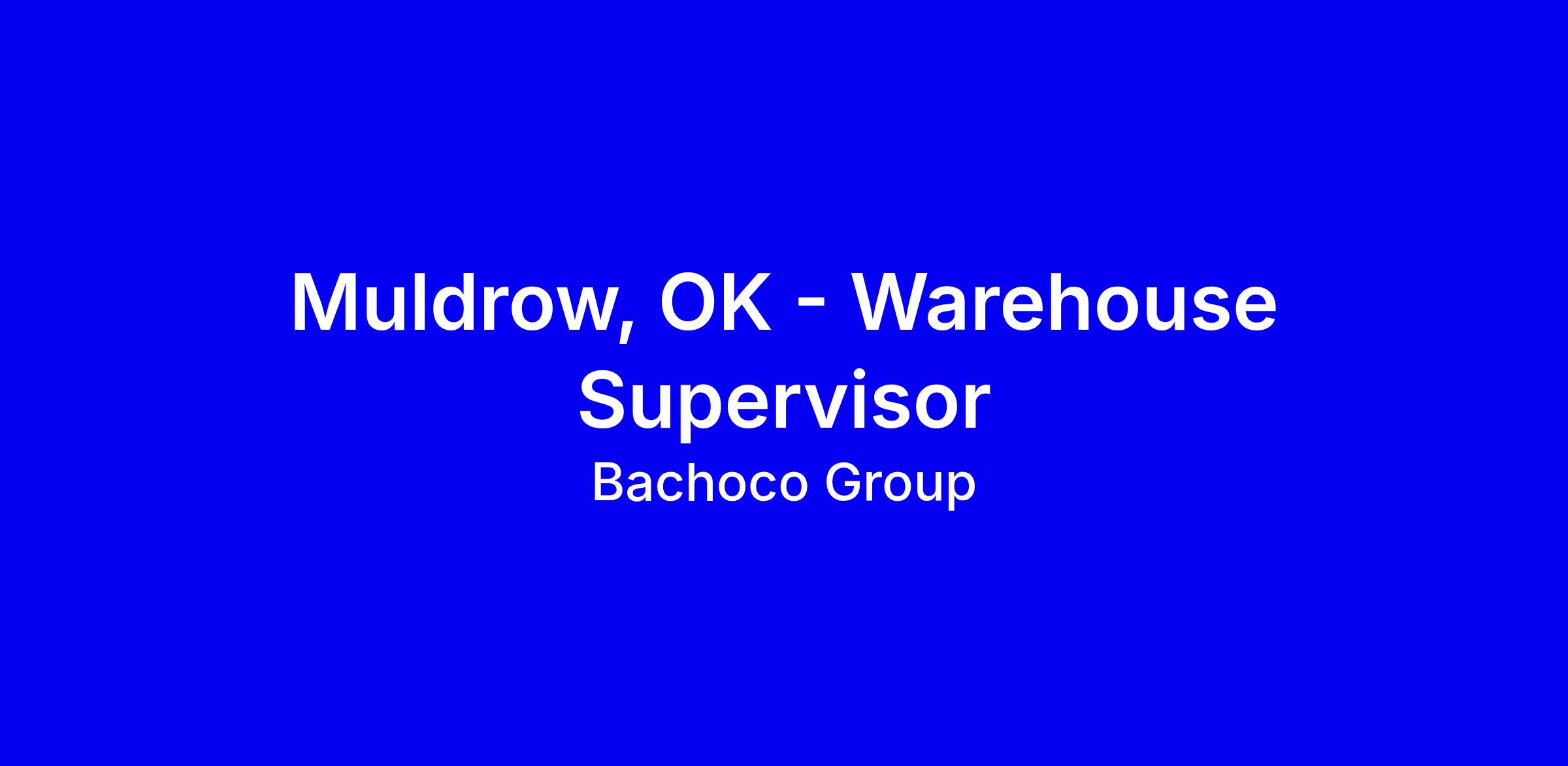 Bachoco USA is seeking a Warehouse Supervisor for our Muldrow, OK facility.