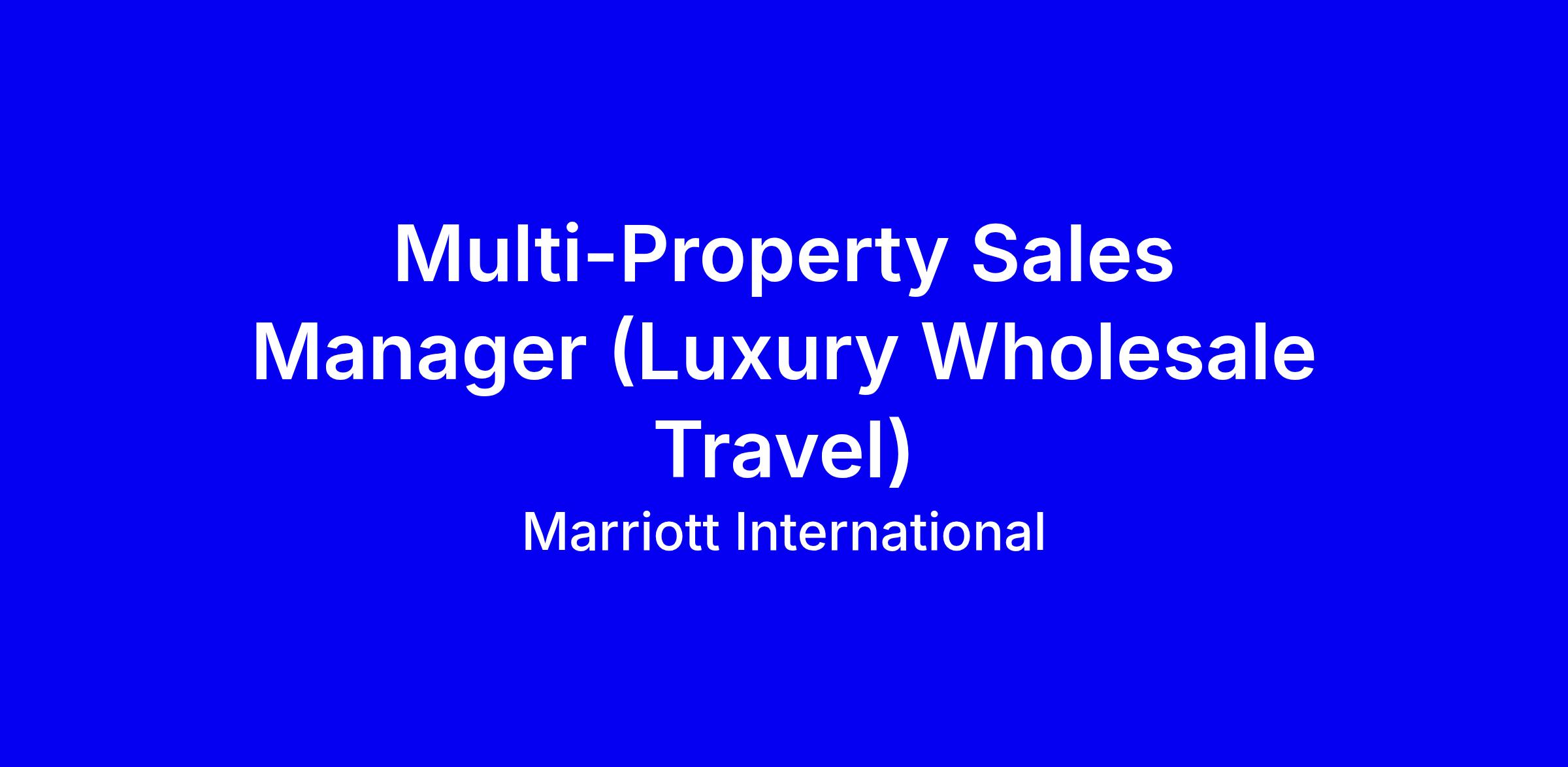 Marriott International is hiring a full-time onsite Multi-Property Sales Manager in Abu Dhabi for luxury wholesale travel. The role proactively solicits and handles sales opportunities, ensures timely turnover for service delivery, and leads activities to build long-term relationships and achieve sales goals. Ideal candidates have a 2-year degree with 3 years in sales or a 4-year degree with 1 year in sales. Core duties include coordinating with off-property channels, cultivating new and existing customers through calls, events, and trade shows, and producing proposals and contracts with a focus on service excellence. Apply by highlighting measurable revenue wins, market insight, and successful deal closures, and showing collaboration and customer service in luxury travel.