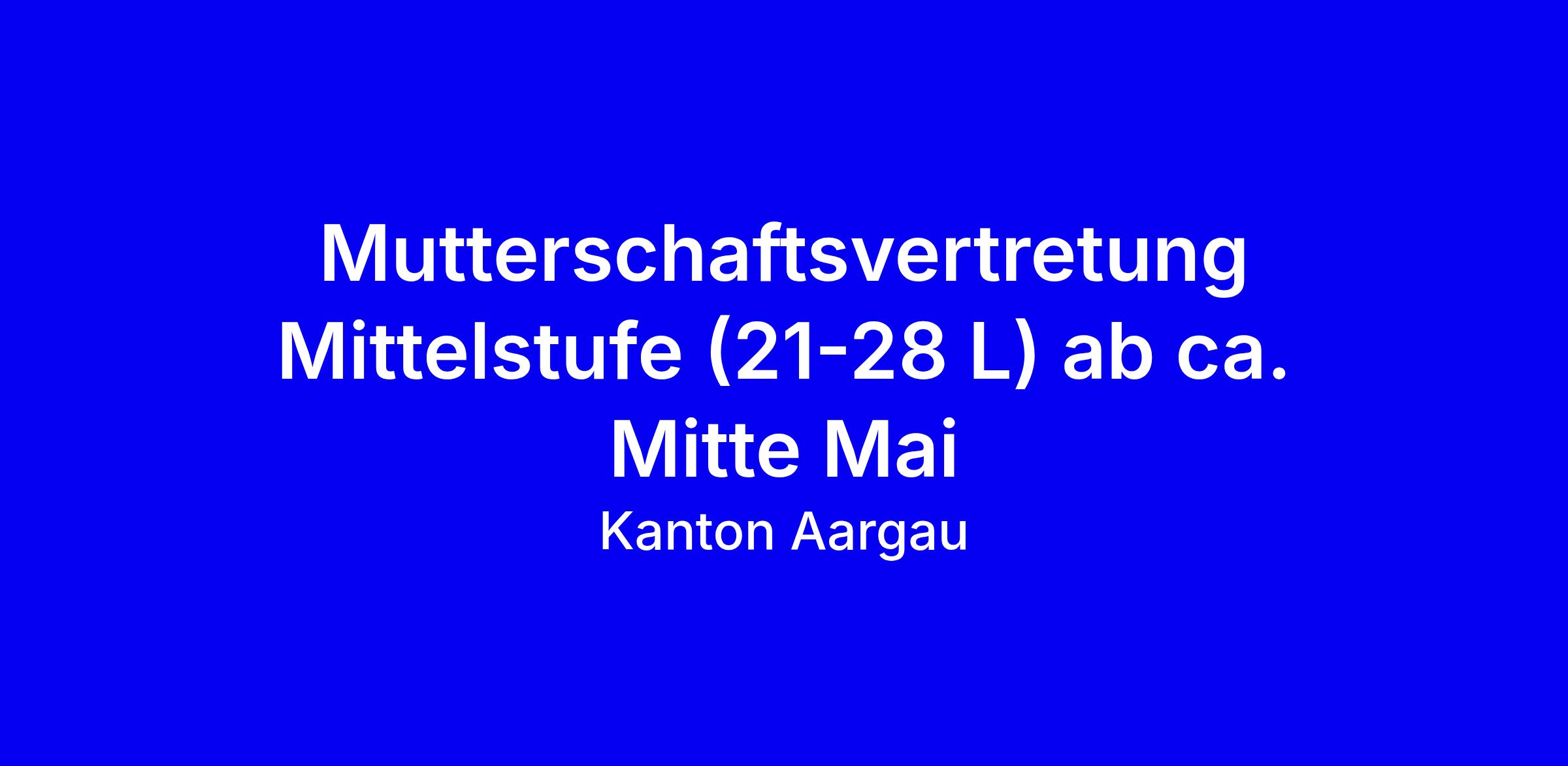 Mutterschaftsvertretung Mittelstufe (21-28 L) ab ca. Mitte Mai