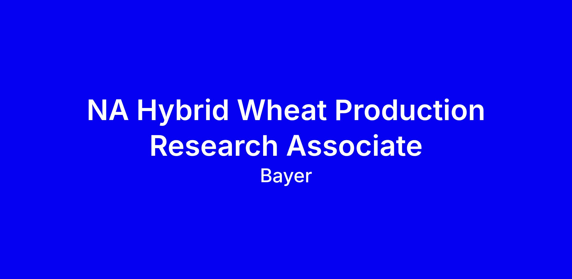 NA Hybrid Wheat Production Research Associate