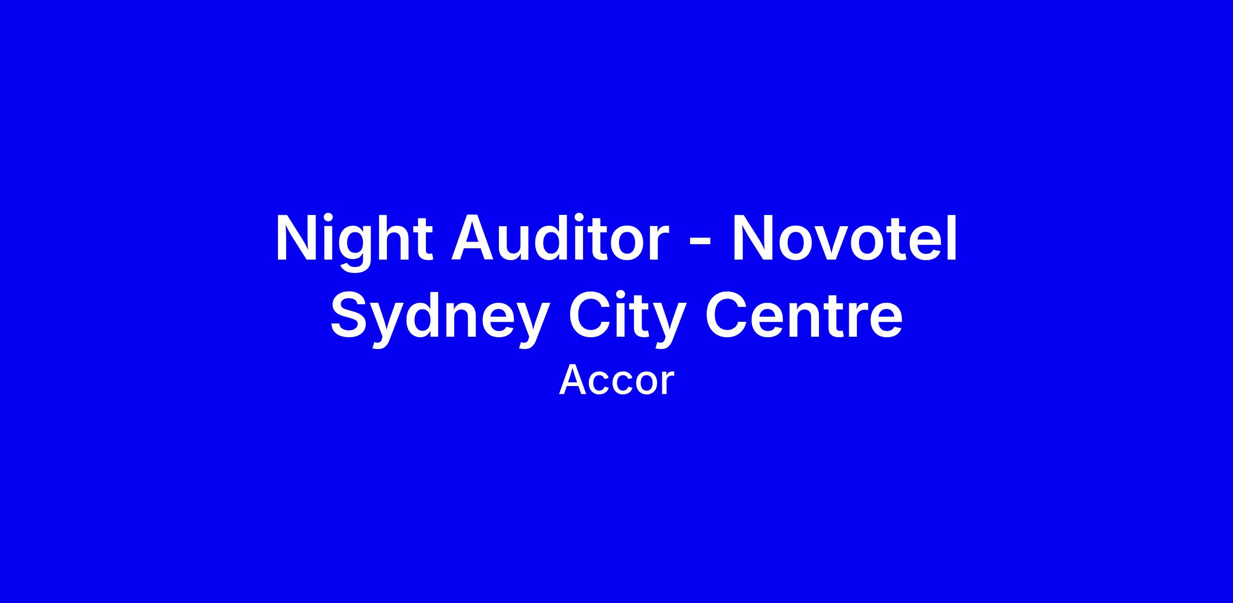 At Novotel Sydney City Centre, we are seeking a Night Auditor to join our team on a full-time basis. This is the perfect opportunity for a night owl, who is guest obsessed, has an eye for detail and a passion for providing exceptional service.