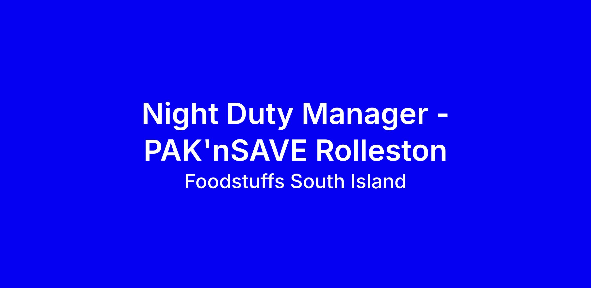 PAK’nSAVE Rolleston is seeking an experienced Night Duty Manager to lead the evening team, keep operations smooth, protect health and safety, and ensure the store looks ready for a strong start the next day. This full-time role is 4 days on, 3 days off with one weekend shift and late finishes. You’ll lead, support, and guide the night crew, manage incidents, and ensure nightly tasks are completed accurately and on time. The most important qualities are proven leadership, excellent organisation and communication, sound decision making, and comfort with late hours; LCQ is preferred. To apply, tailor your CV to night operations, confirm NZ work rights, and meet the February 28 2026 deadline.
