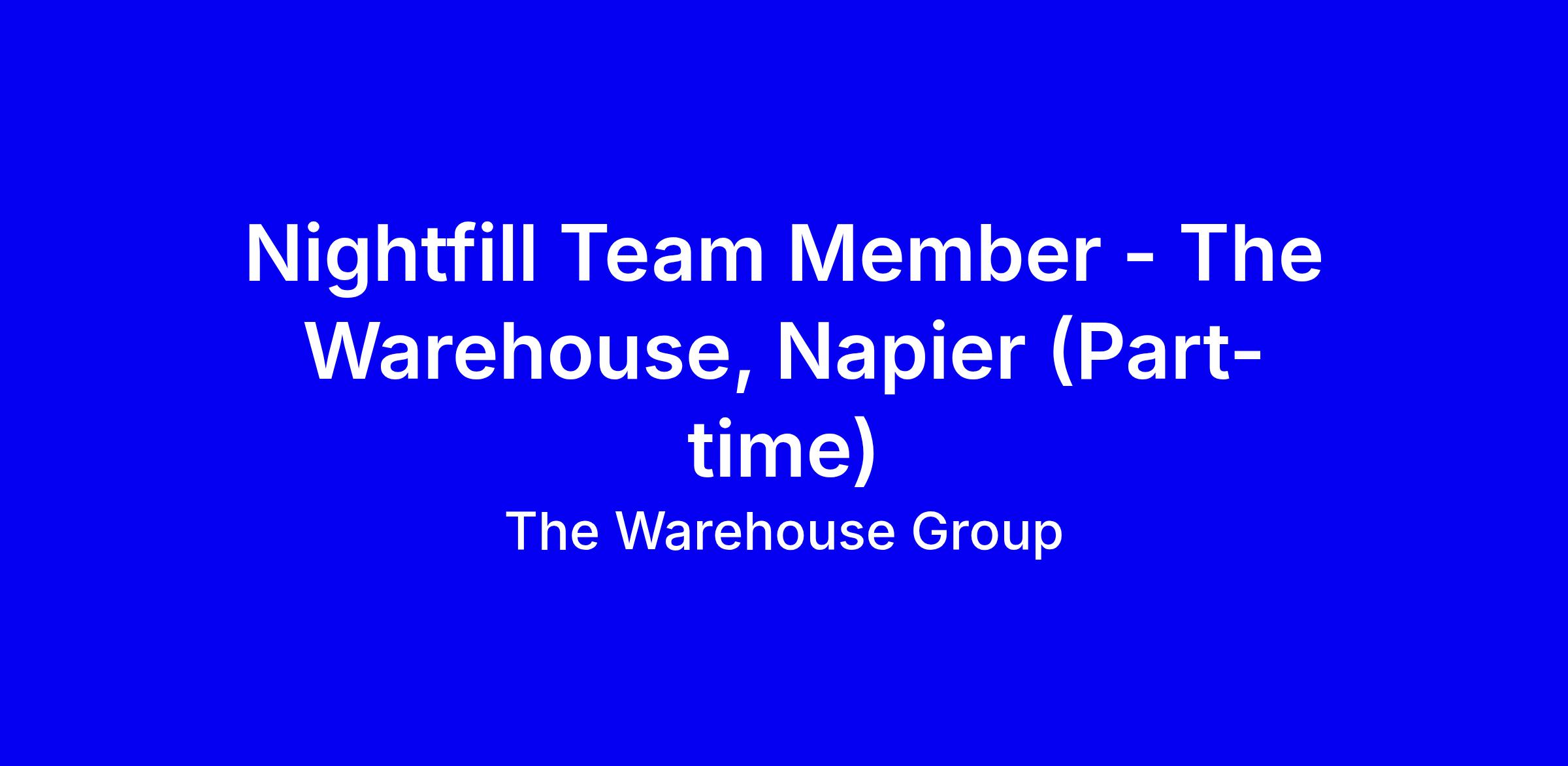 Napier The Warehouse Group is seeking a Nightfill Team Member for a permanent part-time role, Sunday and Monday nights 7:00 pm to 4:30 am, responsible for restocking shelves, following planograms, ensuring pricing and promotions are clearly marked, and keeping the store clean for the morning opening. You’ll help deliver a seamless shopping experience and support merchandising standards guiding customers to the best deals. Ideal candidates are 16 or older, have reliable transport, are physically fit for heavy lifting, and bring a positive attitude and good communication. In your application highlight night-shift reliability, stock replenishment or retail merchandising experience, pricing accuracy, and a proactive safety mindset. Benefits include Team Card discounts, Birthday Leave, Here for Good Leave, and progression opportunities.