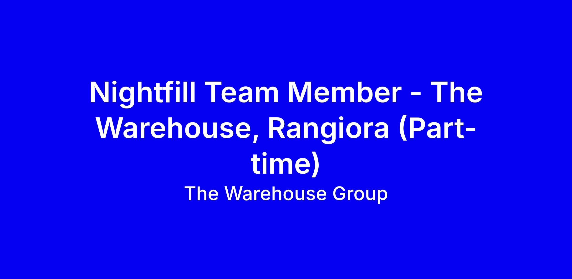 Join The Warehouse in Rangiora as a part-time Nightfill Team Member, restocking to prepare the store for opening, following planograms, ensuring pricing accuracy and visible promotions, and keeping the store tidy. You’ll help create a seamless shopping experience by maintaining layouts and a welcoming environment, with duties including stock replenishment. Ideal candidates are reliable, communicative, positive, and comfortable with heavy lifting; you must be over 16, have transport, and be physically fit. To apply, tailor your CV to highlight stock control, merchandising, and teamwork, confirm your Fri and Sat 7pm to 12am availability, and show enthusiasm for customer experience and opportunities like Team Card and Leave benefits.