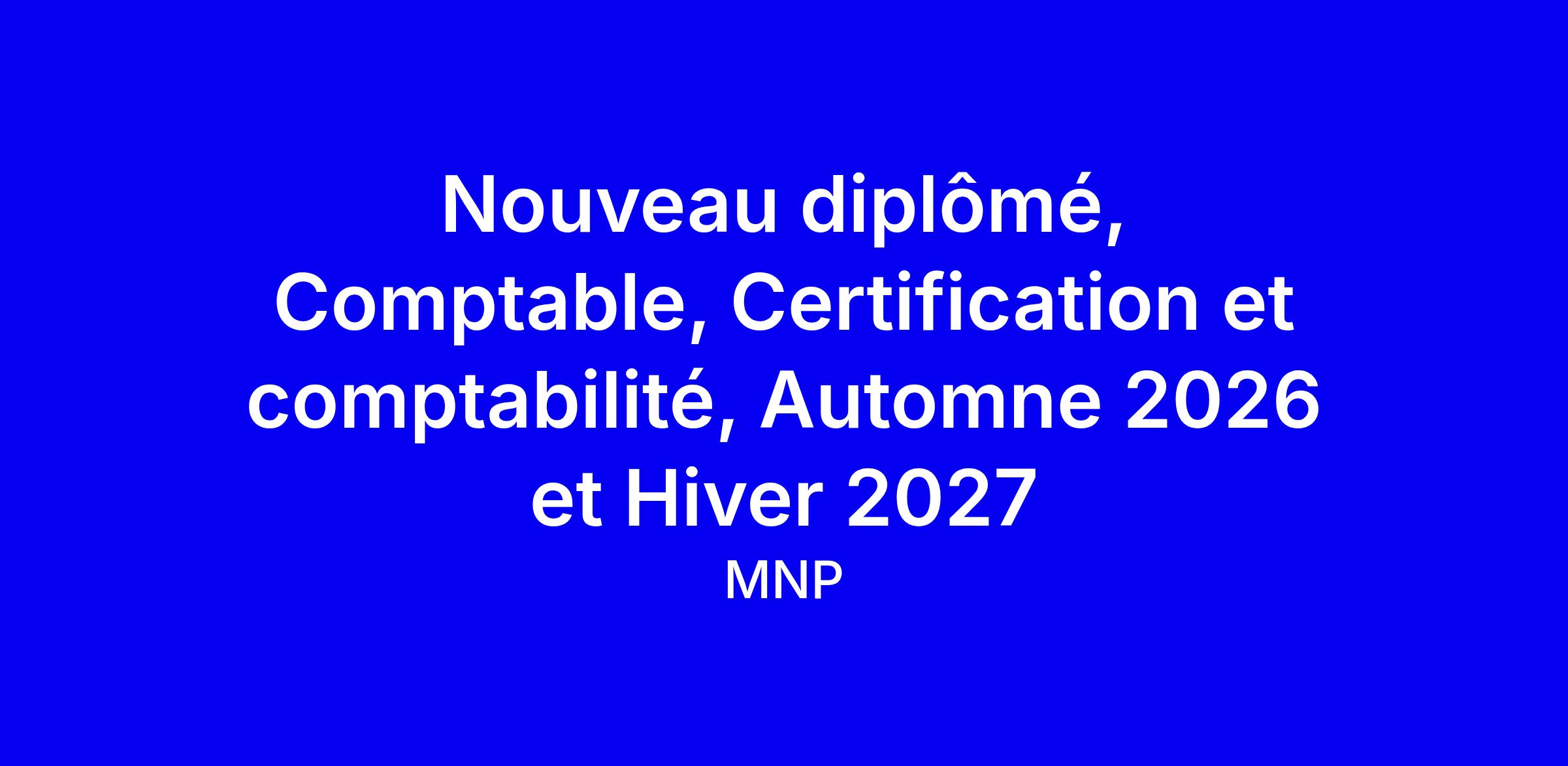 Ce poste de comptable pour la division Certification et comptabilité de MNP à Laval, pour une entrée automne 2026 ou hiver 2027, est une belle opportunité pour un jeune diplômé d’intégrer une culture d’inspiration et d’entrepreneuriat. Vous réaliserez des missions de compilation, d’examen et d’audit, préparerez les états financiers et contribuerez à la tenue comptable et fiscale, tout en gérant plusieurs dossiers et, si nécessaire, en vous déplaçant. Pour postuler efficacement, valorisez votre baccalauréat en commerce avec majeure comptabilité, votre inscription au PFP des CPA, votre expérience pertinente et votre connaissance des PCGR IFRS SEC, ainsi que votre capacité à livrer des livrables clairs et à collaborer; montrez aussi votre engagement envers le perfectionnement via MNP University et votre alignement avec la culture client et le changement.