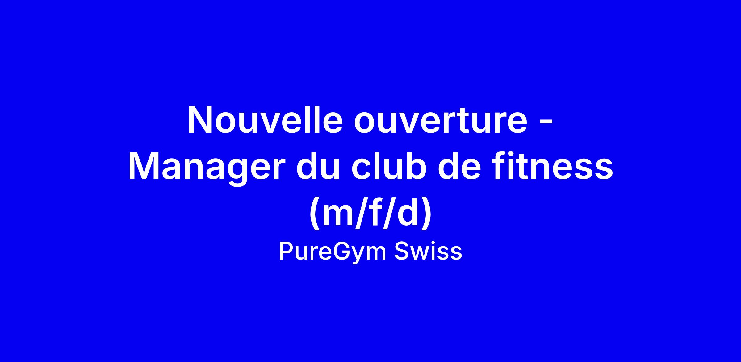 PureGym Swiss ouvre un nouveau club à Lausanne (VD) et recherche un Manager du club de fitness (m/f/d) passionné et orienté résultats. Le candidat idéal a une formation dans le sport, au moins 2 ans d’expérience à un poste similaire, de solides compétences en allemand (B2) et en anglais, et un vrai sens des chiffres ainsi qu’une expérience managériale appréciable. La flexibilité pour les soirées et les weekends, l’autonomie, le sens des responsabilités et une forte affinité avec le fitness et la vente sont essentiels. En retour, vous piloterez votre propre club, bénéficierez d’un abonnement gratuit, de 25 jours de congé et d’opportunités d’évolution. Pour postuler, mettez en valeur votre leadership, votre gestion budgétaire, l’onboarding et la formation d’équipe, ainsi que les résultats mesurables et votre capacité à impulser la culture PureGym et à animer des cours collectifs.