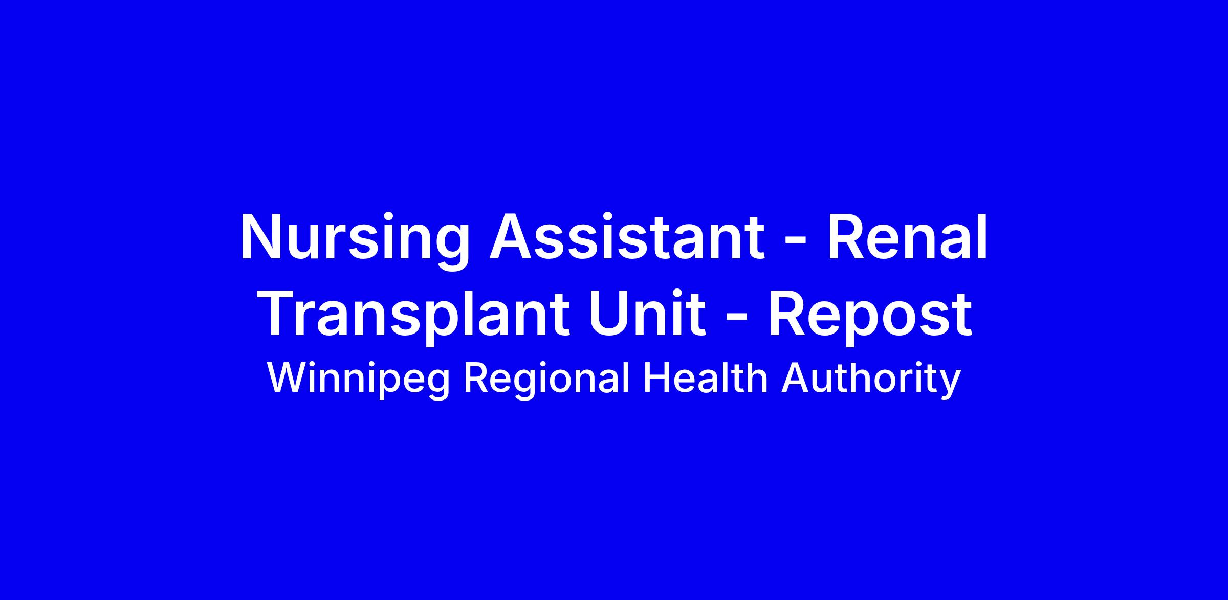 Winnipeg Regional Health Authority seeks a Nursing Assistant for Renal Transplant Unit at Health Sciences Centre. This 0.70 FTE role covers days, nights and weekends and starts ASAP, blending direct patient care with unit clerical duties. Requirements include a Nursing Assistant program or equivalent, Manitoba high school completion, and medical terminology knowledge; Indigenous language skills preferred. Probation includes PHIA, WHMIS and universal precautions training. Highlight organization, communication and teamwork to manage multiple priorities in a fast paced unit. Apply with cover letter, resume, licenses and certifications, plus criminal record and abuse registry checks; ensure you do not exceed 1.0 FTE across Shared Health positions.