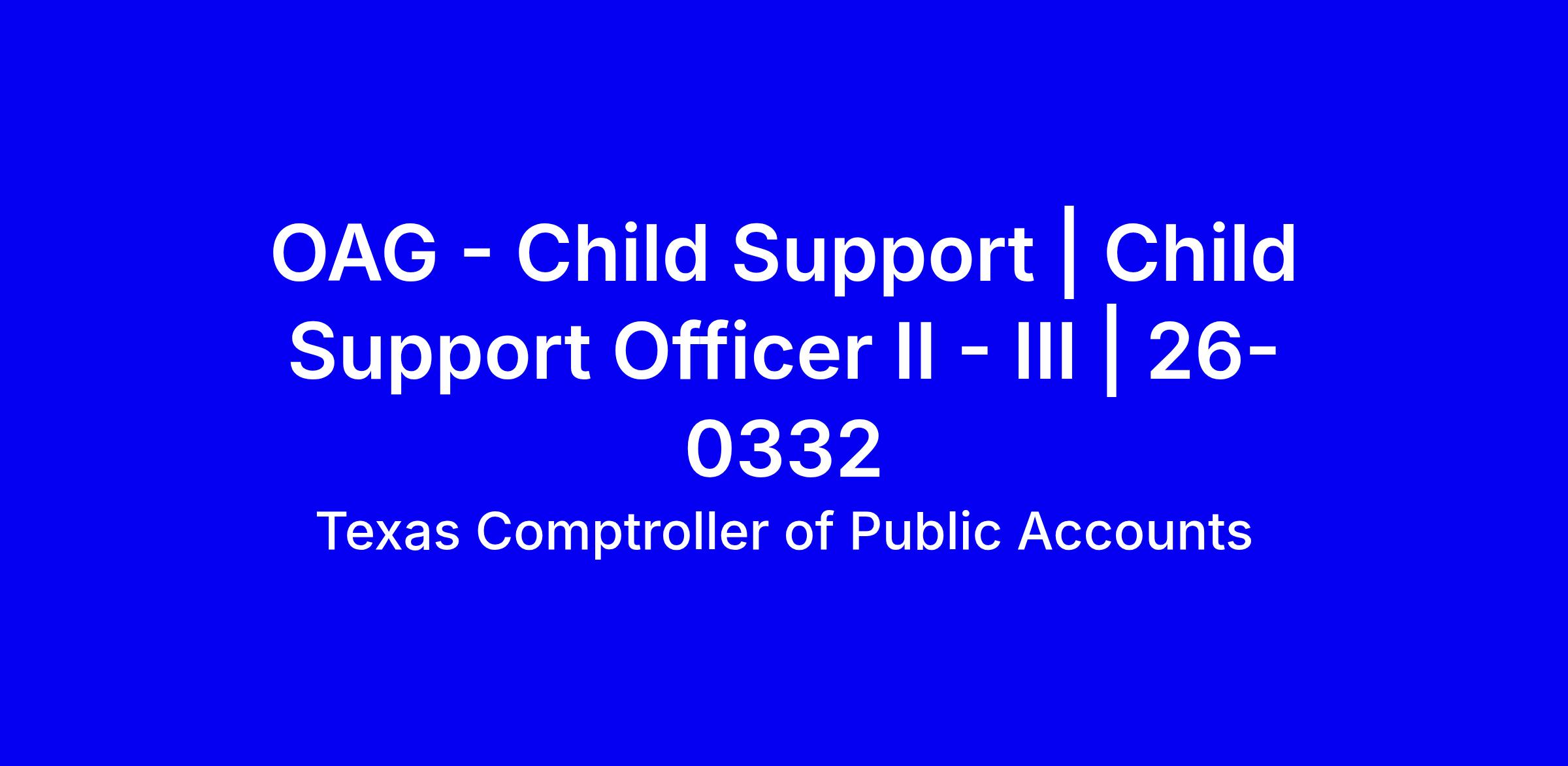 Child Support Officers (CSOs) conduct detailed investigations to locate absent parents; assist in establishing paternity; obtaining court orders for financial support and health care coverage for children; enforcing child support orders; responding to customer inquiries; promoting the involvement of both parents in their children’s lives; and collaborating with state agencies and community organizations to serve Texas families. CSOs gain valuable investigative and legal experience and are part of a collegial team dedicated to supporting Texas children and families. CSOs experience the challenge and honor of public service while enjoying a healthy work-life balance; developing hands-on experience; and engaging camaraderie with their colleagues across the state.