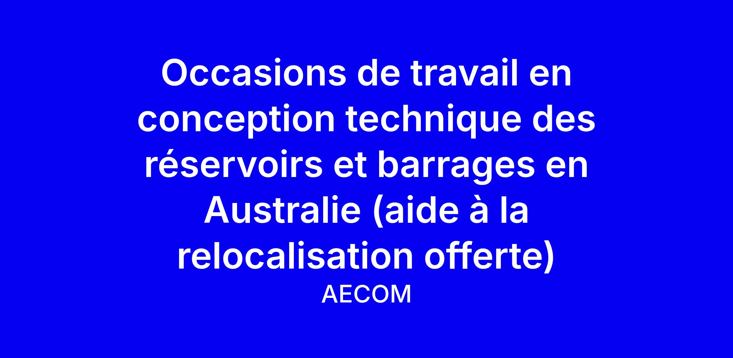 AECOM recherche un(e) ingénieur(e) en conception spécialisée barrages et réservoirs pour renforcer son équipe en Australie, avec un soutien complet à la relocalisation et à la demande de visa, et des opportunités dans Brisbane, Newcastle, Melbourne, Sydney, Perth, Gold Coast et Sunshine Coast; poste à temps plein et sur site. Au quotidien, vous pourrez réaliser de la conception préliminaire et détaillée, l’inspection et l’évaluation de barrages existants, des revues de sécurité pluridisciplinaires, la gestion de projets clients et le mentorat d’ingénieurs juniors, tout en collaborant avec des bureaux à l’étranger. Qualifications souhaitées: diplôme pertinent, CPEng fortement apprécié, solides compétences en rédaction et en conception, aisance en anglais, et une attitude positive tournée vers l’innovation et le travail d’équipe. Conseils d’application: adaptez votre CV et votre lettre pour mettre en avant vos projets de barrages et réservoirs, chiffres et résultats clairs, expérience internationale et collaboration; postulez même si vous ne cochez pas toutes les cases, l’employeur évalue l’ensemble du profil; préparez des exemples de rapports, dessins et devis, et montrez votre motivation pour la relocation et le équilibre travail‑famille.