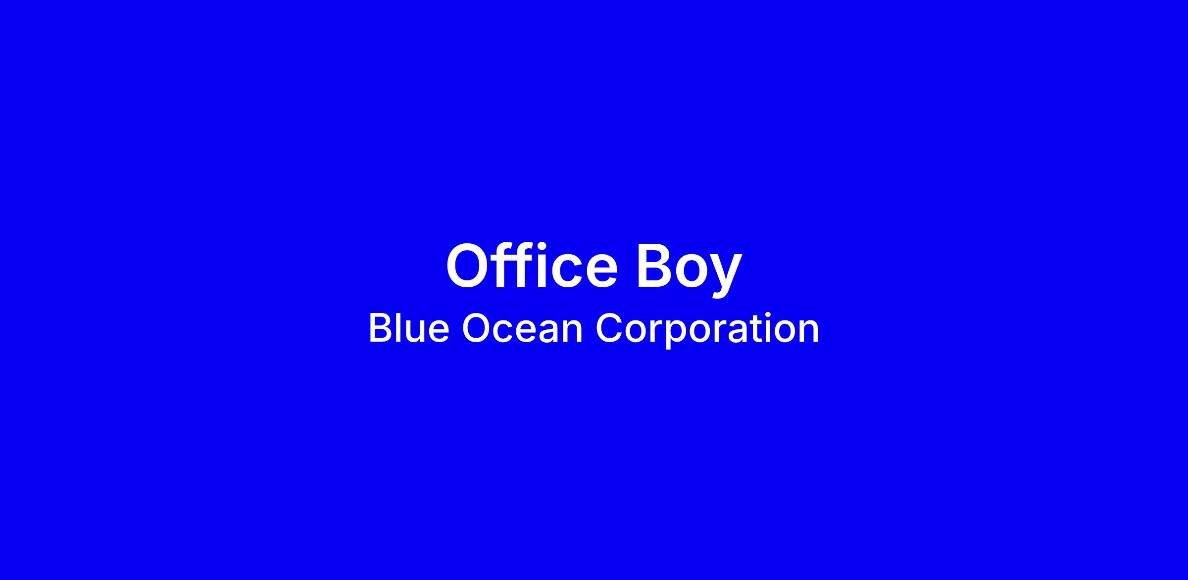 Blue Ocean Corporation seeks a full-time onsite Office Boy in Abu Dhabi to keep the office clean and organized, assist with meeting setup and breakdown, manage supplies, coordinate maintenance with external vendors, file and organize documents, handle logistics and mail, answer inquiries, ensure equipment works, help prepare reports, manage calendars and room bookings, support onboarding, and assist with safety protocols and ad hoc tasks. Ideal candidates have a high school diploma, strong organizational and time management skills, the ability to multitask, good communication, and prior office experience is a plus. To apply, tailor your resume to show reliability, proactive problem solving, vendor coordination, and visa eligibility; highlight health and safety awareness. Benefits include Employment Visa, Medical Insurance, and Annual Ticket to Home Country.