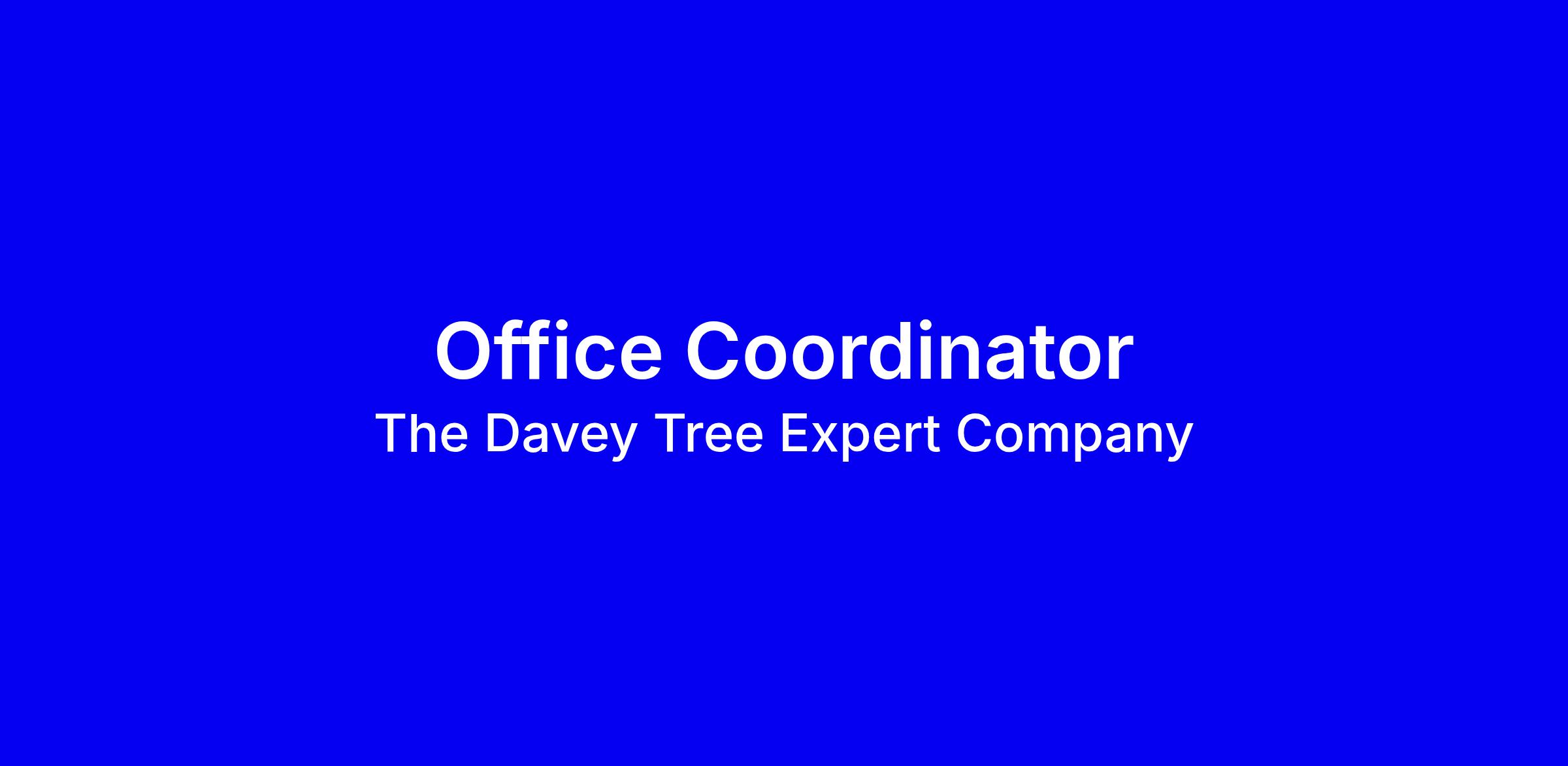 Davey Tree Expert Company seeks an Office Coordinator in Glen Burnie, with a 7:30 am to 4:00 pm schedule and pay between $20 and $25 per hour. You will be the first contact for clients and the office, triaging needs, handling calls, preparing proposals, initiating contracts, processing time sheets, maintaining databases, ordering supplies, invoicing and accounts receivable, onboarding. Requirements include two years in office administration, strong communication, proficiency in Outlook Word and Excel, excellent organization, and the ability to multi-task and meet deadlines; CRM and SAP experience is preferred. Apply with a resume showing client service and results, and explain why Davey appeals to you.