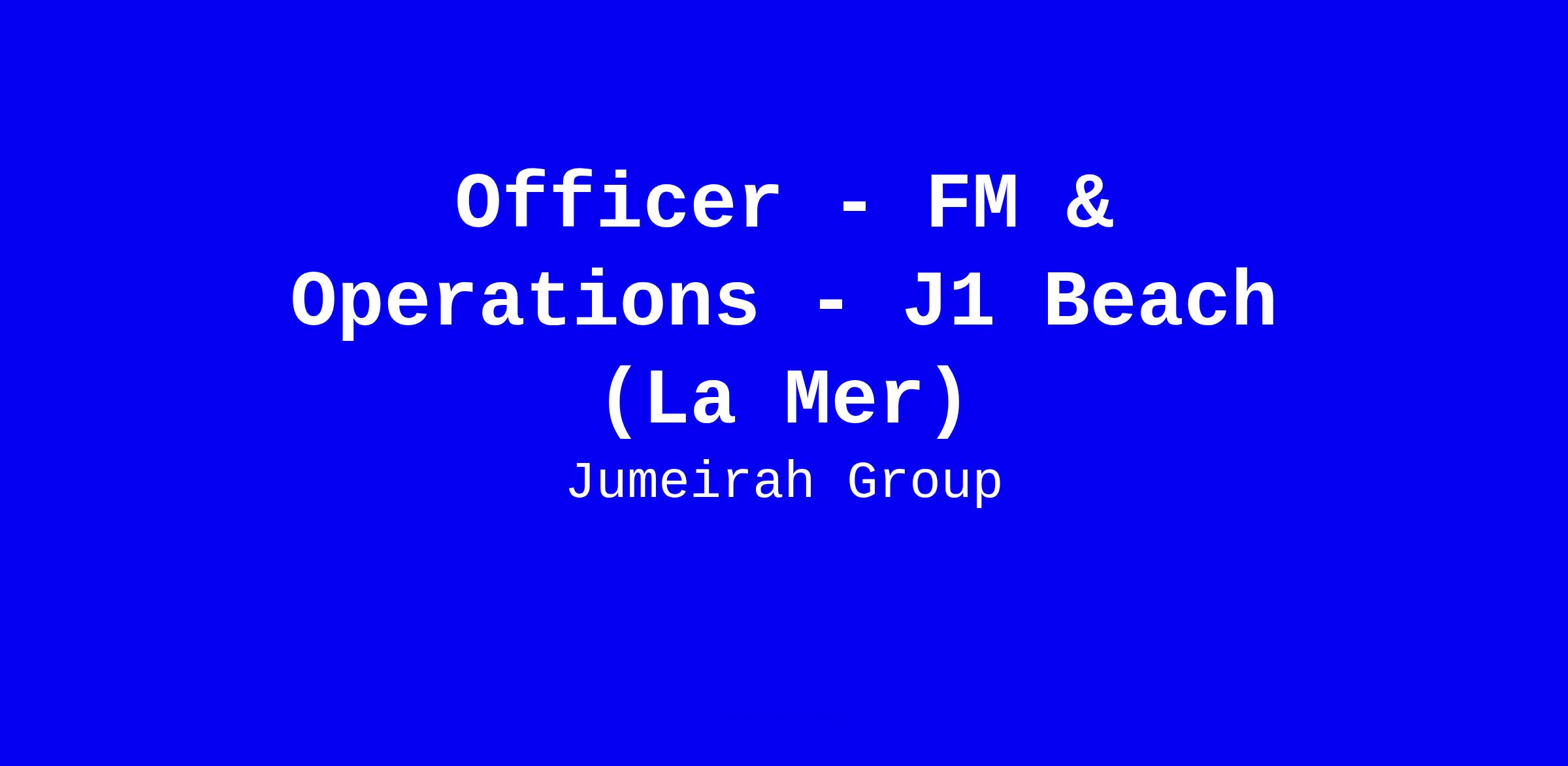 Jumeirah Group seeks an Officer for FM & Operations at J1 Beach La Mer in the United Arab Emirates. You will be the daily operations lead for facility management across MEP, soft services, security and cleaning, coordinating with contractors to meet scope, deadlines and service levels; supervise TVR works, perform plant inspections, track energy savings, maintain MEREX policies, and manage DLP defect logs while ensuring regulatory compliance and safety. The ideal candidate has a bachelor’s or diploma in engineering and 3-5 years in FM operations, with a proven ability to orchestrate multi stakeholder activities and deliver on SLAs. When applying, tailor your resume to highlight asset maintenance planning, safety track record, preopening and mall operation experiences, and quantify outcomes; mention UAE specific codes or certifications and your readiness for on site, night shift work and long hours.