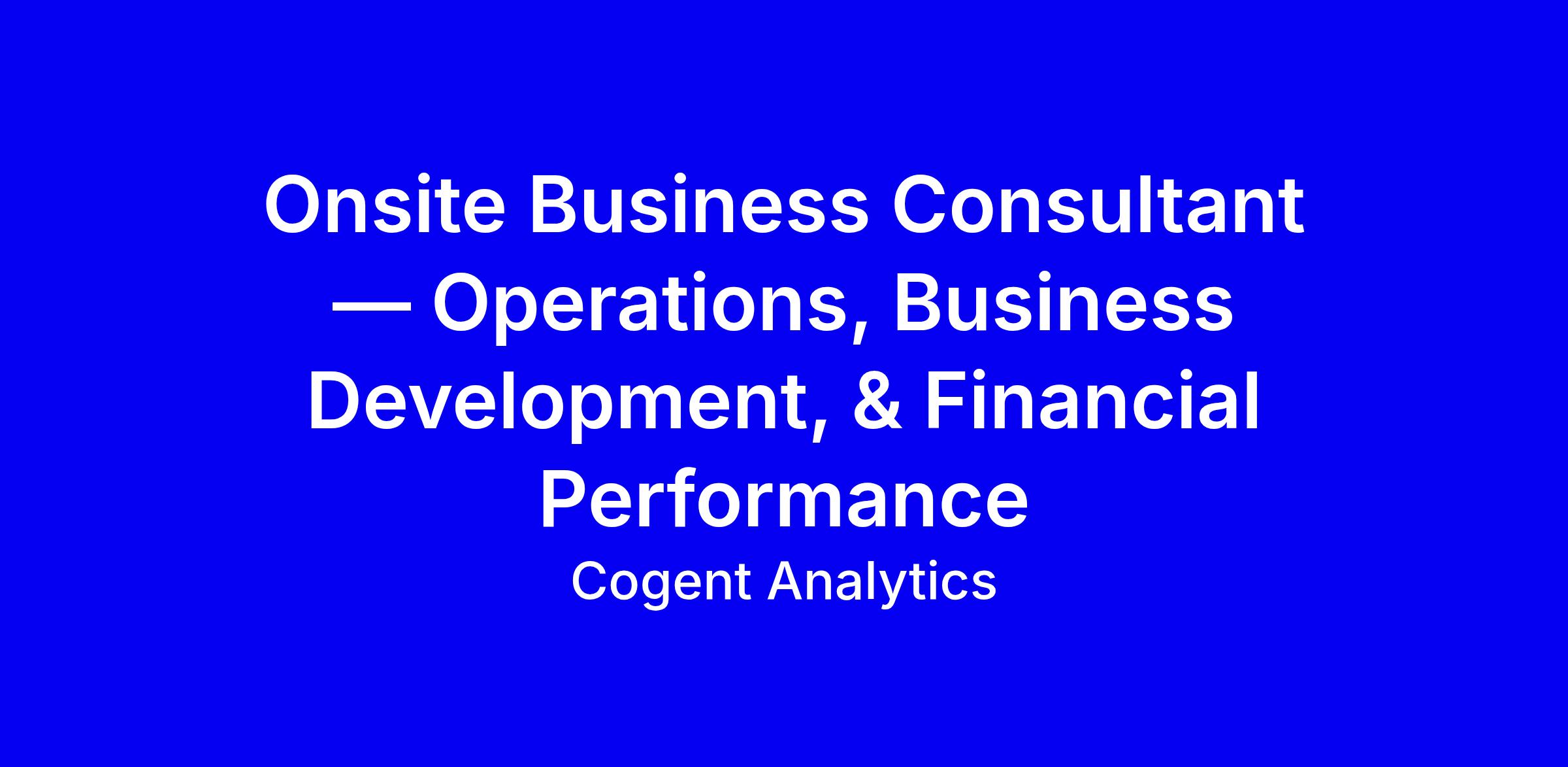 Cogent Analytics seeks a Business Operations Consultant/Project Director who partners with privately held, owner-led businesses to lift operations, financial controls, and sustainable profitability. This is a hands-on, boots-on-the-ground role acting as the owner’s co-CEO, with 100 percent travel to client sites. The top fit: substantial consulting experience with a proven track record of delivering value, fiduciary responsibility managing large budgets, and the ability to coach owners through organizational change. You lead engagements from start to measurable outcomes, not mere oversight. To apply, highlight quantified financial improvements, on-site transformations, leadership with owners, and travel readiness; show US work authorization, English fluency, and proficiency with MS Office, dashboards, CRM, and PM tools; ownership experience preferred if applicable.