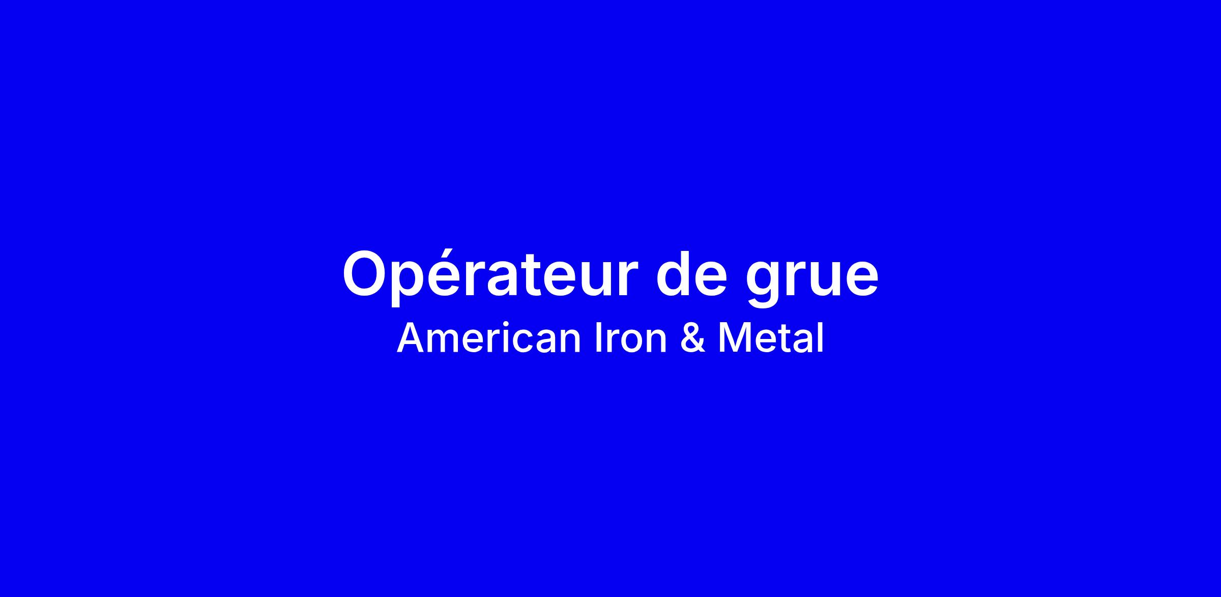 American Iron & Metal recherche un opérateur de grue pour son site de Québec. Sous l’autorité du directeur de site, vous utiliserez une grue sur roues pour charger et décharger le matériel, peser les équipements et gérer l’inventaire tout en respectant les règles de sécurité. Le candidat idéal possède au moins un an dans un poste similaire, sait conduire un véhicule lourd et détient la carte de compétences engins de chantier ainsi que le permis de classe 5 valide; le bilinguisme est un atout et une bonne communication est indispensable. AIM offre un salaire compétitif, congés, assurances, régime REER et des bourses jusqu’à 8 500 $ par enfant. Pour postuler mettez en avant votre expérience pratique et votre sens sécurité.