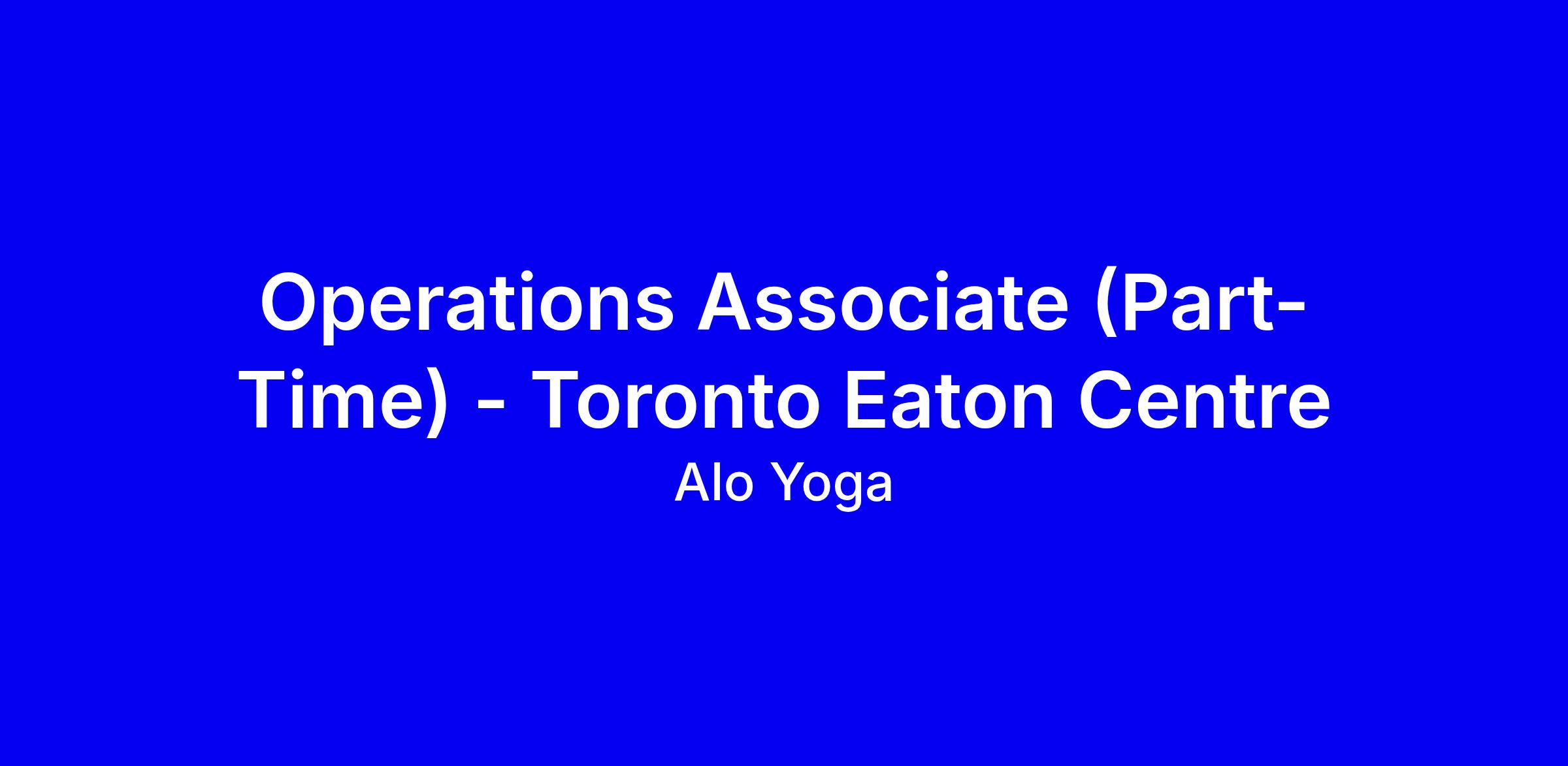 ALO Yoga is hiring a Part-Time Operations Associate for the Toronto Eaton Centre onsite to drive store profitability and efficiency. You will work with the Operations and Visual Management team to improve inventory accuracy, shrink reduction, shipments and replenishment, and maintain strong visuals while moving across the floor and back of house to serve guests. Requirements include 1+ year in a client-centric sales and operations environment, the ability to lift up to 50 pounds, and shifts up to 30 hours weekly including the Blackout period. To apply, share measurable inventory improvements, guest-service wins, cross-functional collaboration, and alignment with ALO principles. Perks include discount, Wellness Club access, clothing allowance and incentives.