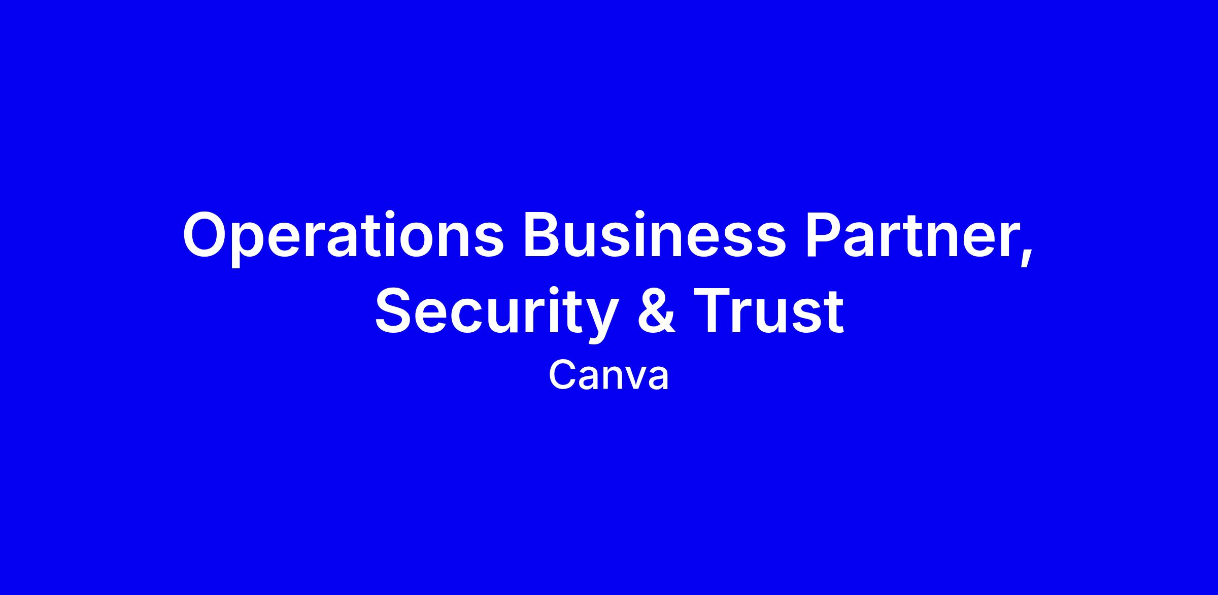 Canva seeks an Operations Business Partner for Security & Trust in Sydney, hybrid from our campus, to be the operational engine of a 150-strong engineering SuperGroup. You’ll partner with leadership to drive planning, cadence and progress, break down ambiguity into trackable workstreams, and design events, rituals, and communications that keep teams aligned and energized. You’ll own cross-functional programs, anticipate friction, and tell the story of impact to multiple audiences. Ideal candidates bring enablement, ops or program management experience, strong change management and relationship skills, and a passion for AI-enabled efficiency. Apply with concrete examples, show your energy, and be prepared for virtual interviews; Canva offers equity, parental leave, wellbeing allowances and flexible leave.