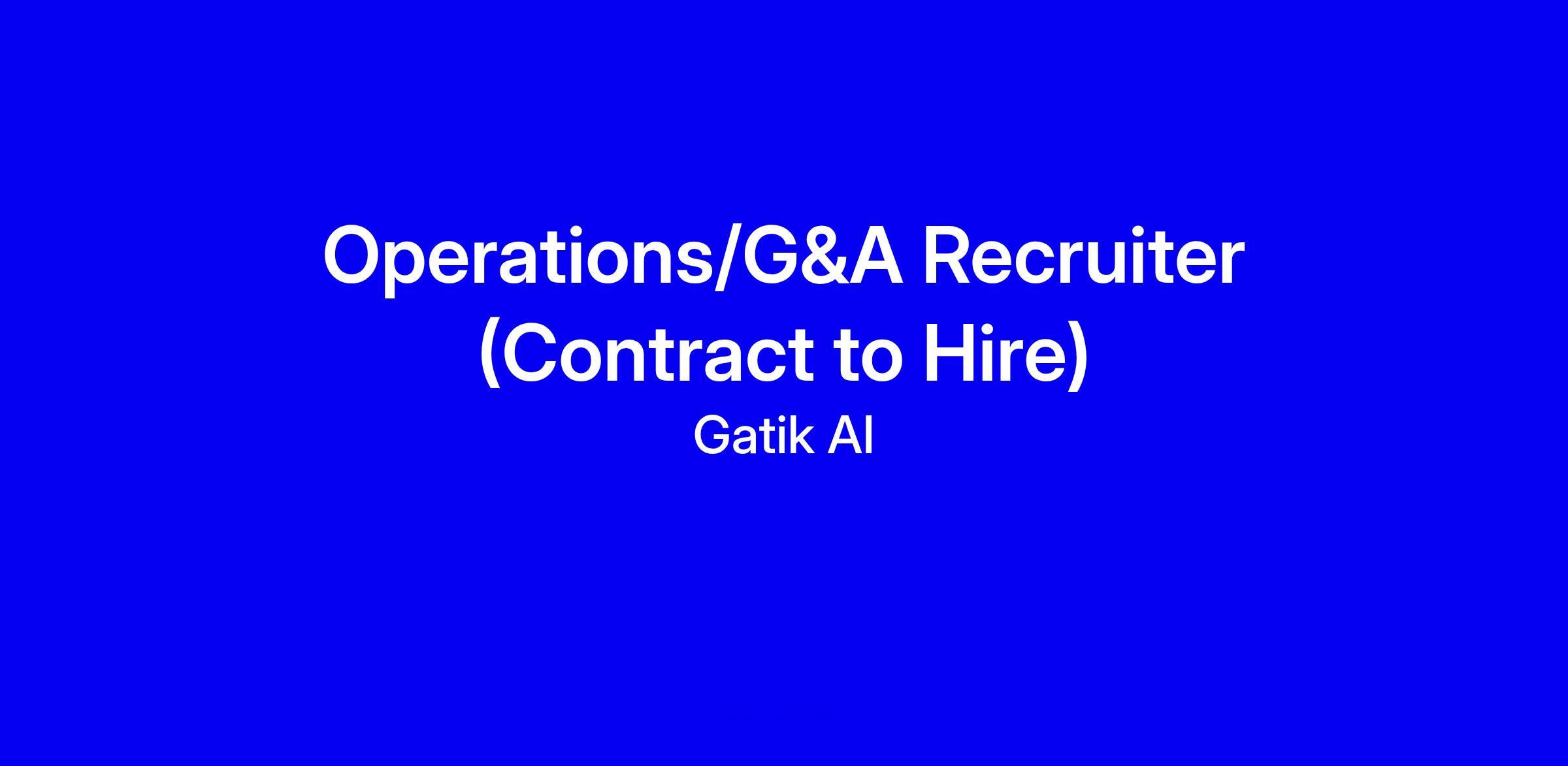 The Operations/G&A Recruiter will collaborate with teams across Gatik to find and hire top talent for key roles in operations, management, and administration. This role focuses on sourcing candidates, managing the hiring process, and supporting teams to meet their hiring goals. You’ll help build strong pipelines and ensure a smooth, positive experience for every candidate. This is a growth-focused role within our expanding Talent Acquisition team, offering the opportunity to improve and scale our recruiting processes.