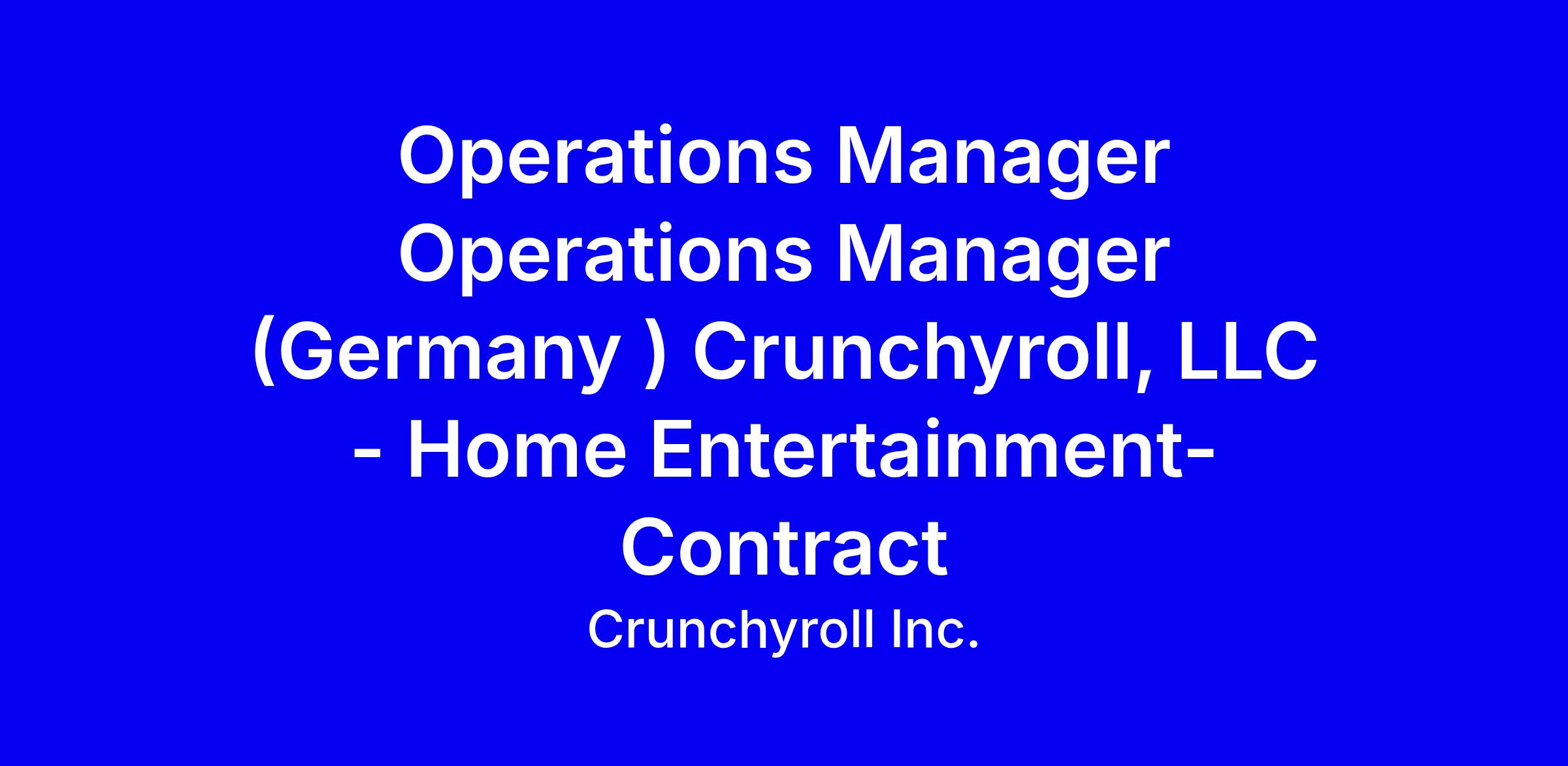 Crunchyroll is seeking an Operations Manager for Germany, UK and global supply chain on a 3 month contract to oversee materials management, planning, print production, manufacturing and distribution for the UK and Germany, reporting to the Director of Global Collectibles Distribution. You will manage relationships with third party plants, direct disc replication, packaging art approvals, warehousing and inventory, and ensure on-time delivery of territory specific and global SKUs. Ideal candidates bring hands-on experience with age rating submissions, process improvements across print production, and delivering German and English language assets to spec. To apply, tailor your resume to highlight vendor management, cross-territory workflows, regulatory submissions and on-time delivery; state modality preference and show a Kaizen mindset.