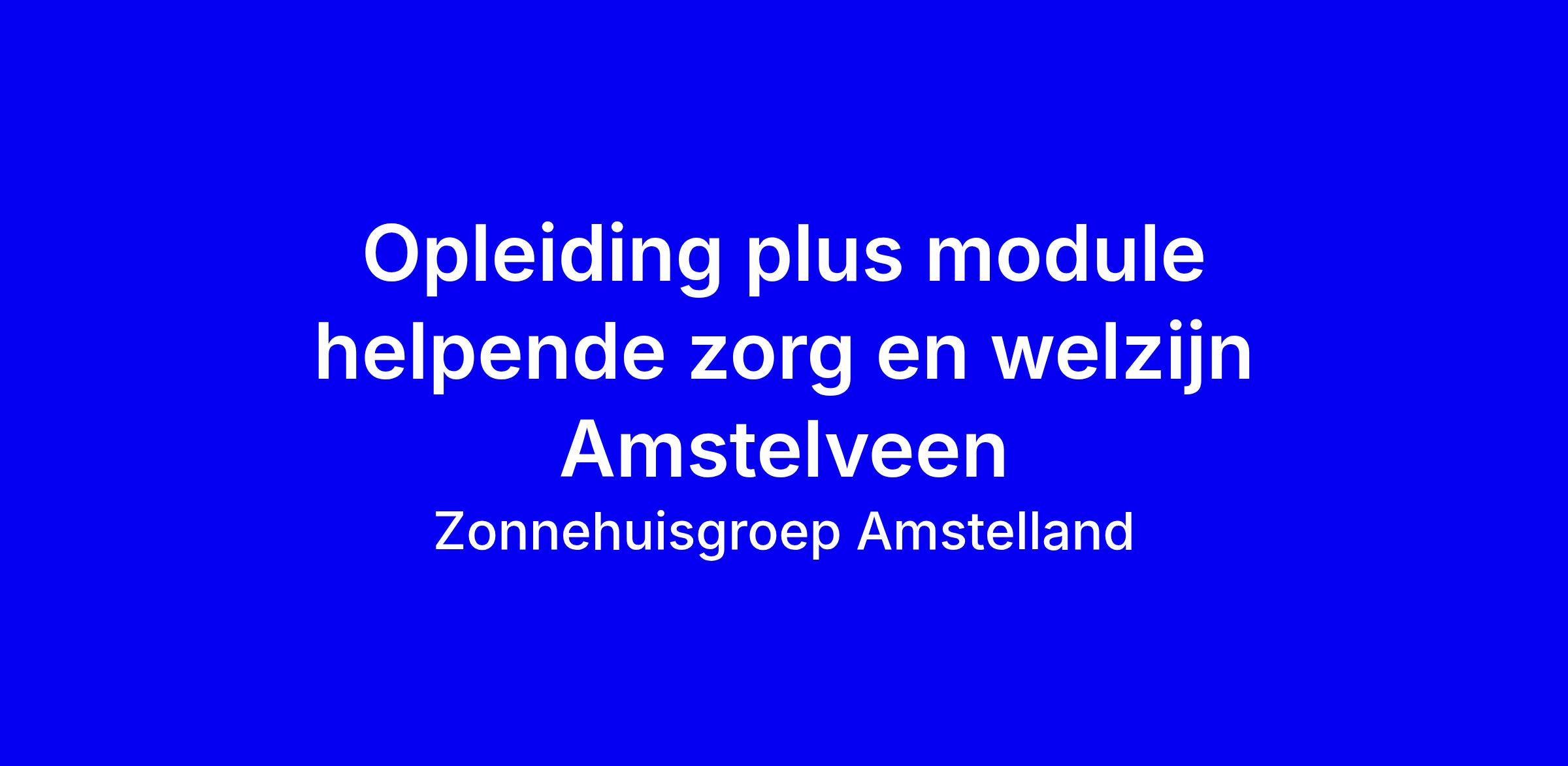 Opleiding plus module helpende zorg en welzijn Amstelveen