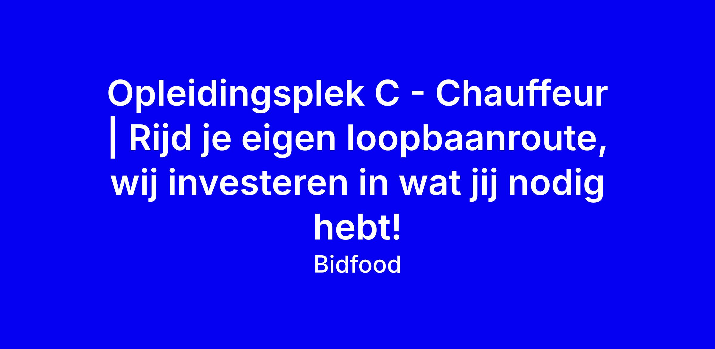 Bidfood biedt in Utrecht een fulltime opleidingsplek tot C chauffeur, met een goede werk-privébalans en garantie dat opleidingskosten voor je worden betaald. Je start als Bijrijder met vaste routes en klantcontact, gevolgd door een instaptoets, medische keuring, rijbewijs theorie en praktijk, en uiteindelijk het rijexamen na circa 4 tot 6 maanden. Bij succes krijg je direct je eigen vrachtwagen en een salarisstappenplan; Bidfood betaalt het C-rijbewijs inclusief code 95 ter waarde van ongeveer 6.000 euro. Je ontvangt persoonlijke begeleiding en een hoge slagingskans terwijl je jezelf ontwikkelt. Belangrijke eisen: B-rijbewijs, motivatie om C te halen, verantwoordelijkheid, energie, discipline, goede Nederlandse taalbeheersing en VOG. In je sollicitatie benadruk je klantgerichtheid, betrouwbaarheid en je bereidheid om de opleiding te doorlopen.
