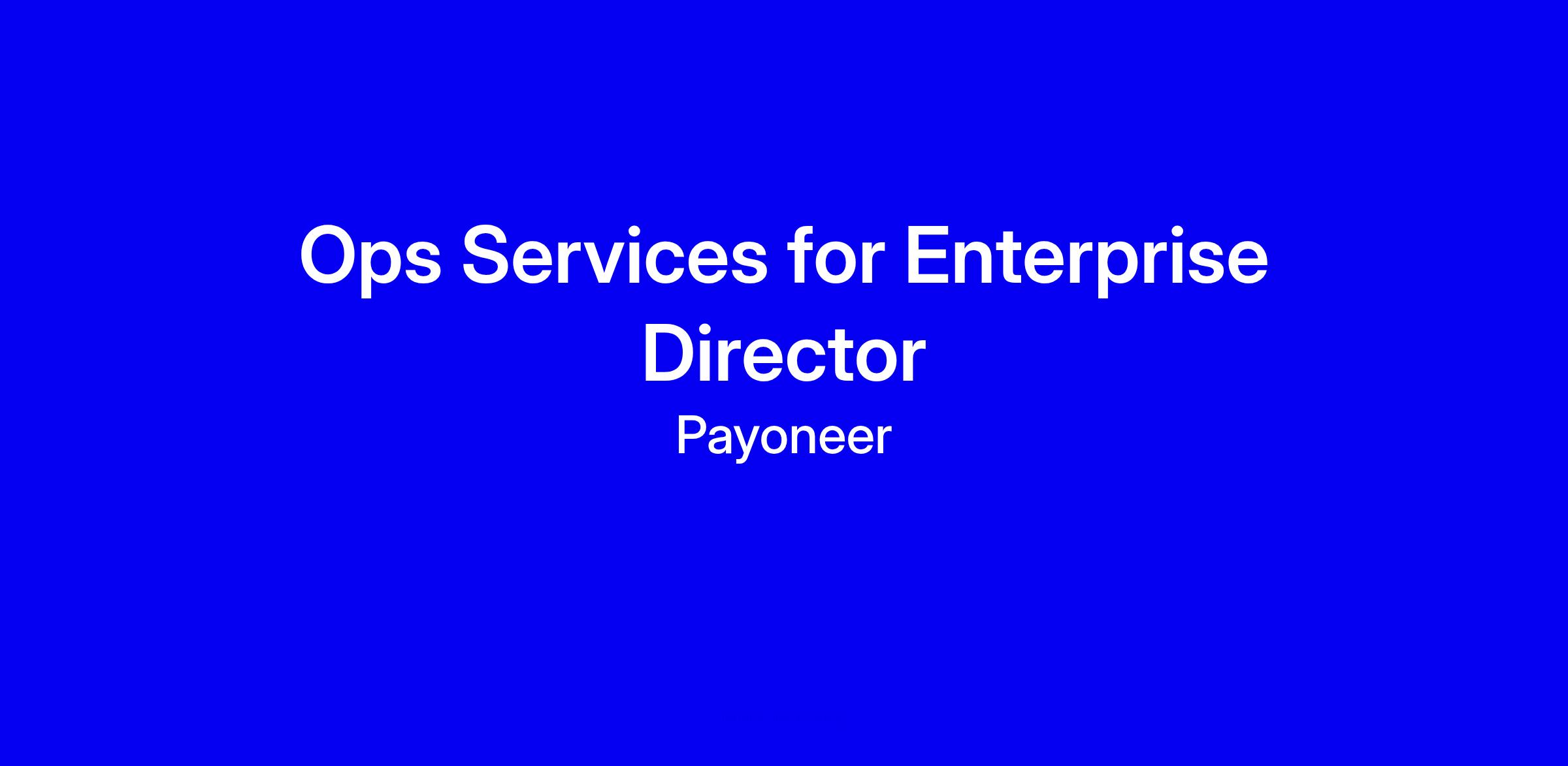 As the Ops Services for Enterprise Director, you will provide strategic leadership for Payoneer’s global Services for Enterprise (OSE) organization. You will be responsible for shaping and executing the service delivery vision for our largest and most complex clients, driving global scalability, operational excellence, and client satisfaction. This role is critical in deepening client relationships, enhancing post-sales service delivery, and aligning internal teams to support enterprise growth.