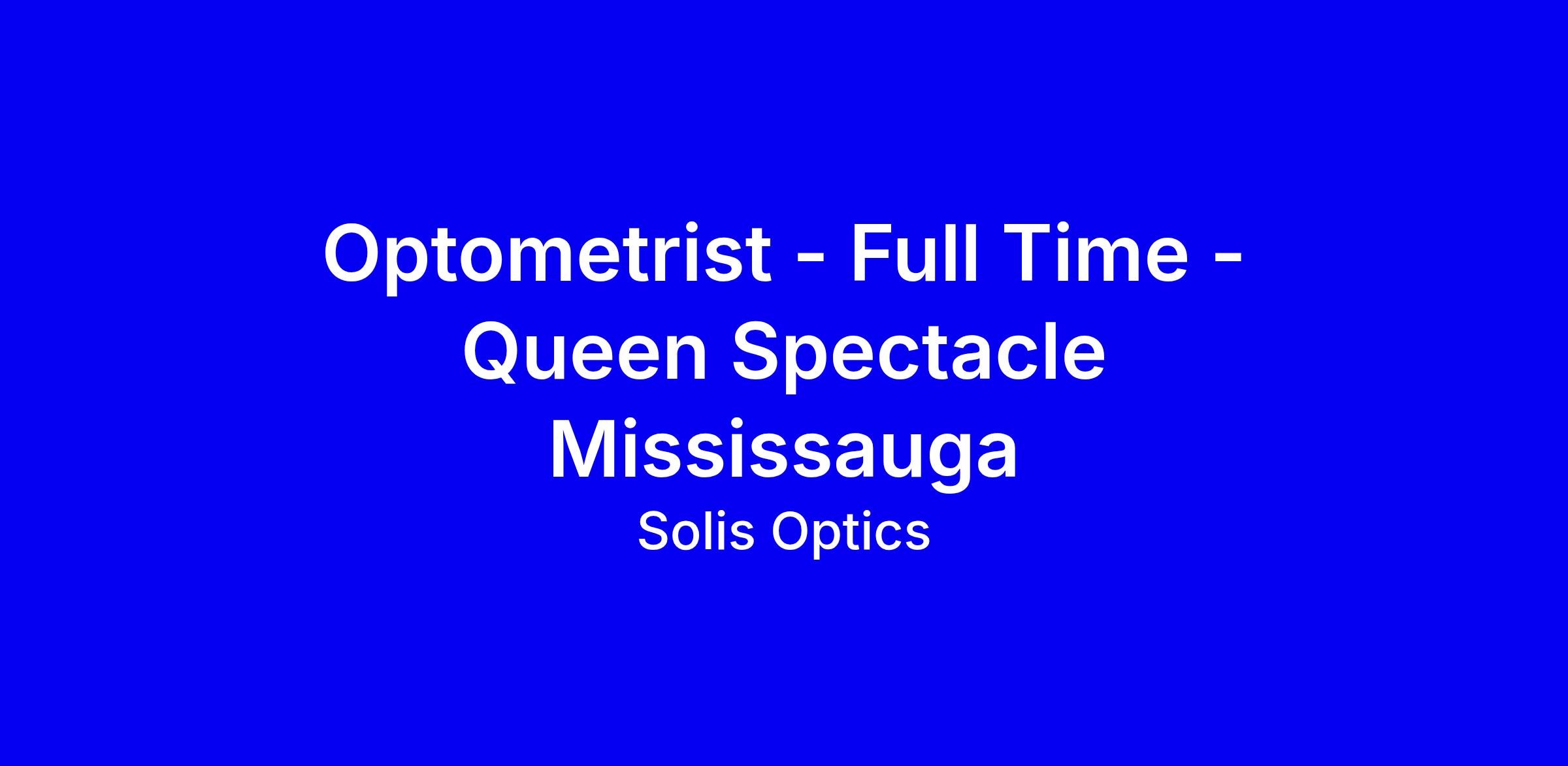 Solis Optics, the retail optical division of FYI Health, operates over 40 locations across Canada and is seeking an optometrist for the Queen Spectacle Streetsville clinic in Mississauga to practice 4 or 5 days per week. The role offers a percentage of total patient revenue, a generous daily minimum, and a signing bonus, with opportunities for both new grads and experienced clinicians. The clinic is equipped with pretesting and exam tools including OCT imaging and Octopus Visual Field, a strong base of myopia management patients, and full staff support for booking, pretesting, recalls and billing, plus an EMR system with online booking and automated reminders. To learn more, contact [email protected] (and [email protected]).
