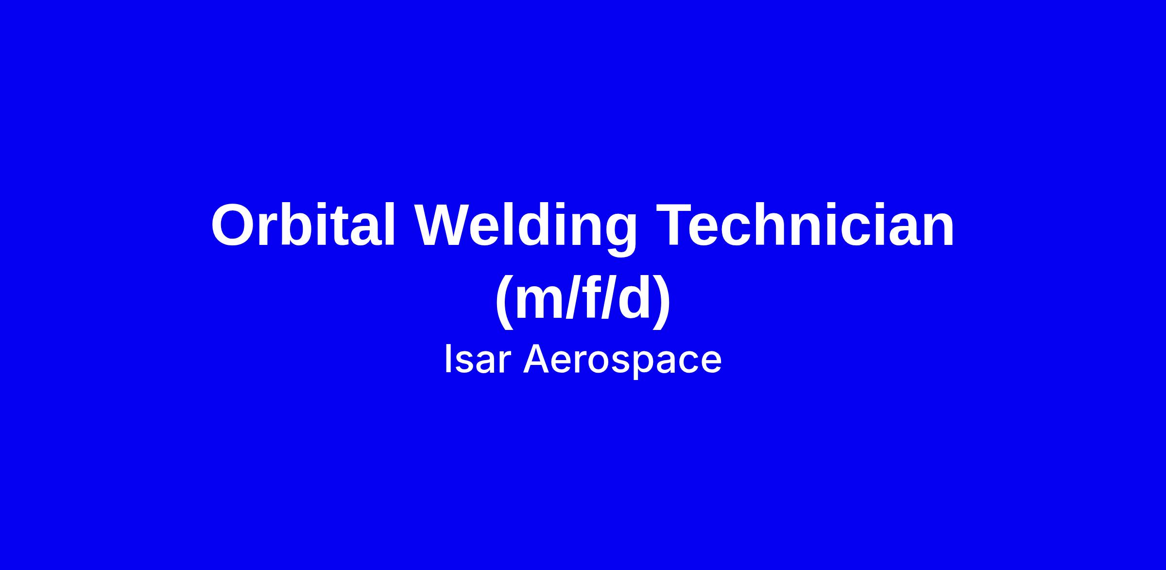 Isar Aerospace is hiring an Orbital Welding Technician (m/f/d) for a full-time onsite role in Ottobrunn, Bavaria. You will operate, program and inspect orbital welding processes for aerospace components, prepare parts, read technical drawings, and collaborate with engineering and manufacturing to drive continuous improvement while upholding safety and quality. A technical or vocational education in manufacturing or welding with 3-5 years of experience is required; basic welding skills with orbital welding experience a plus. English fluency is essential, German a plus. To apply, tailor your resume to show welding programs, prototype experience, reading drawings and teamwork, and highlight aerospace exposure and any robotics or automation experience, plus your fit for Isar's space mission.