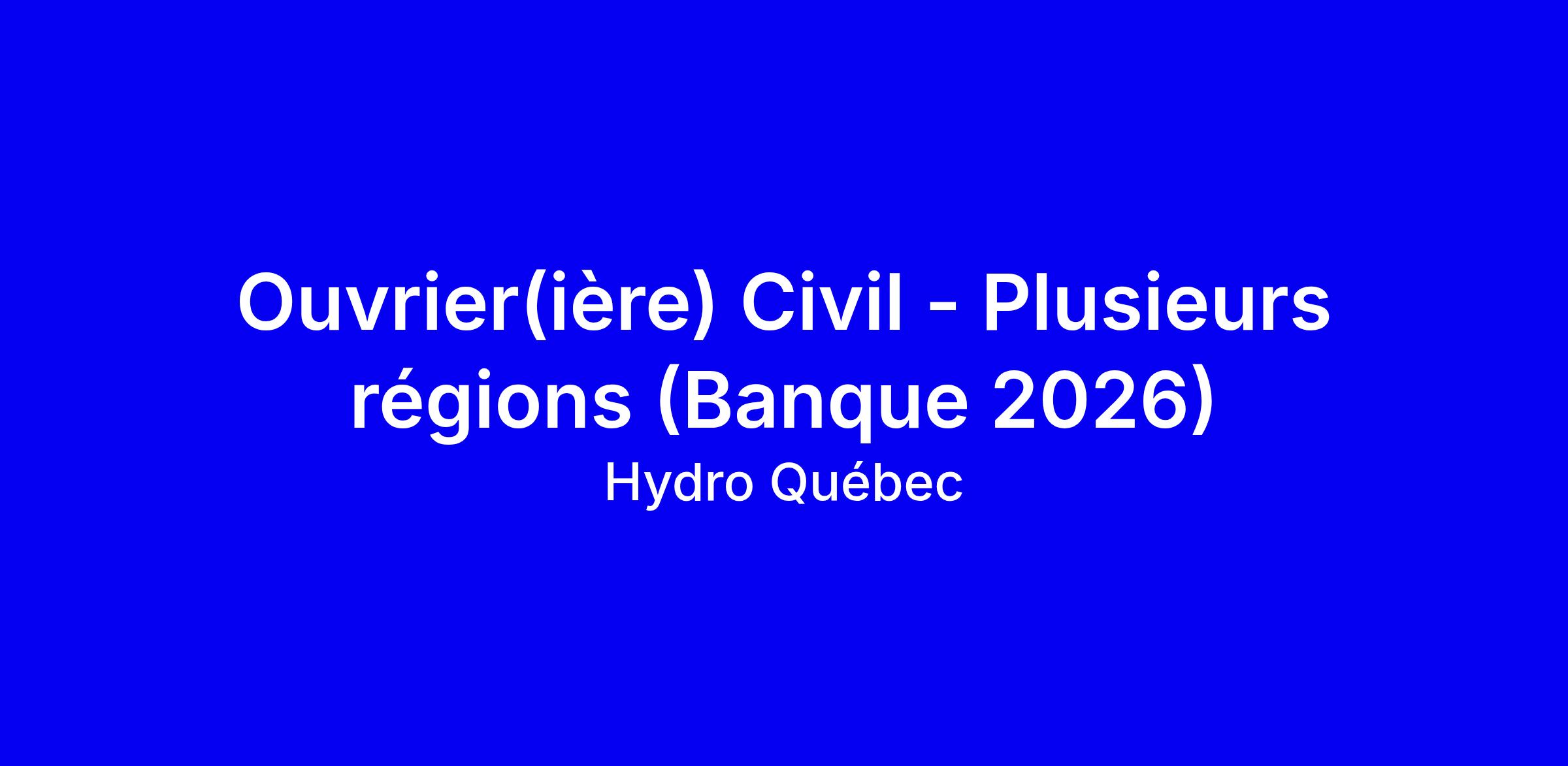 Hydro-Québec cherche des ouvriers et ouvrières civils pour plusieurs régions Banque 2026. Poste temporaire de 12 mois à pourvoir sur sites du Québec; horaires 37 heures par semaine sur 4 jours. Le candidat idéal détient un DEP en Charpenterie Menuiserie, Plomberie Chauffage, Soudage Montage ou Mécanique industrielle de construction et d’entretien, sait lire plans et devis, utiliser les outils et réaliser des travaux d’entretien civil tels que bétonnage, maçonnerie, menuiserie, couverture, soudure, plomberie et peinture. Exigences: français suffisant, permis de conduire classe 5 ou capacité d’obtenir une classe adaptée, aptitude physique et esprit d’équipe. Pour postuler joindre CV détaillé et diplôme; Hydro-Québec valorise l’égalité des chances et offre des avantages compétitifs, télétravail hybride selon les besoins.