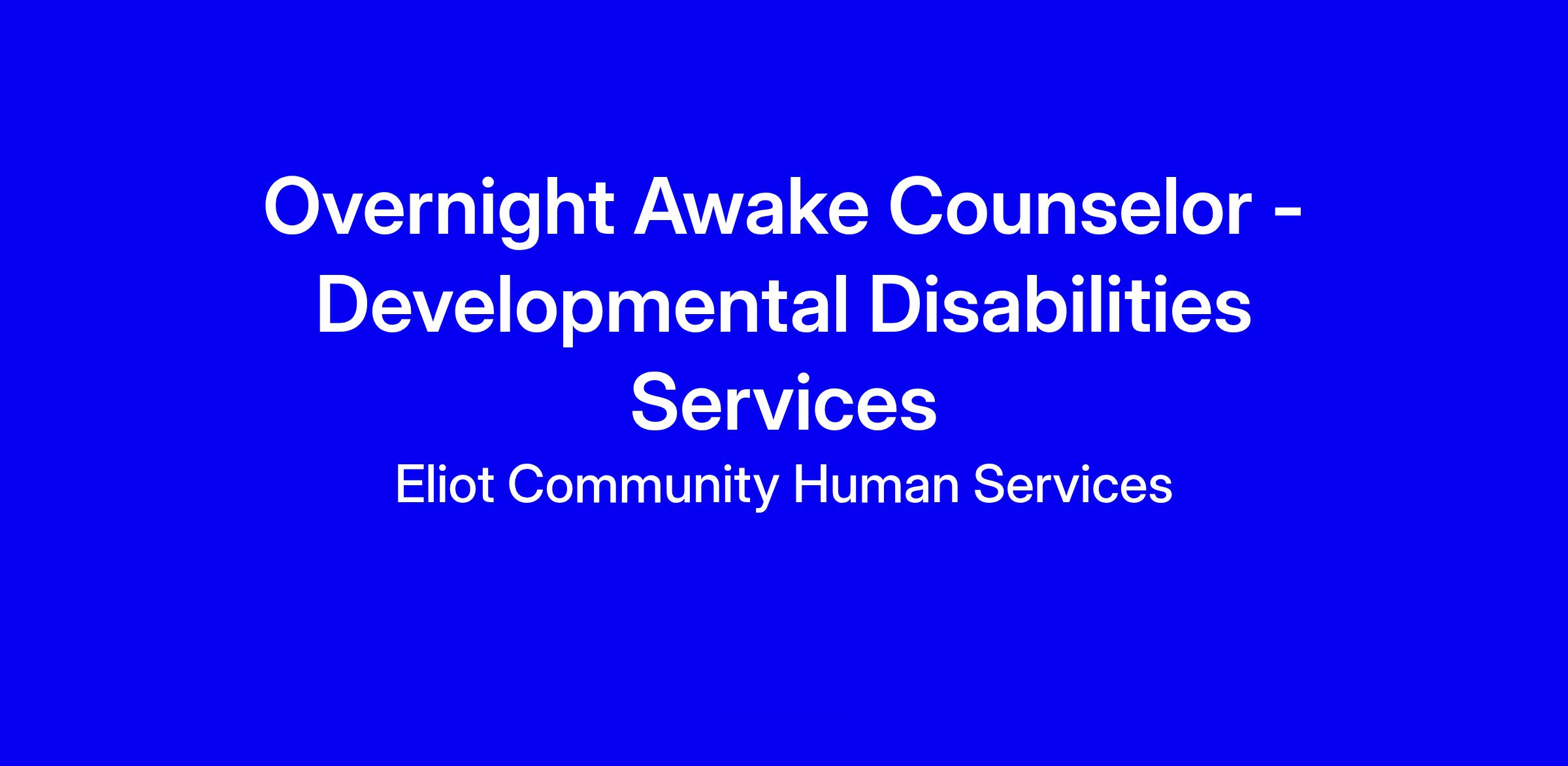 Eliot is seeking an Overnight Awake Counselor to join our Developmental Disabilities (DD) residential program serving adults with intellectual disabilities. Our residential programs offer a person-centered continuum of services that provides innovative and high quality programming to adults with intellectual and developmental disabilities. The program offers support and opportunities for individuals to enrich their lives, develop social and daily living skills, and build social and community connections. This position requires the candidate to be awake, alert, and available to individuals throughout the course of the night providing assistance and support as needed.