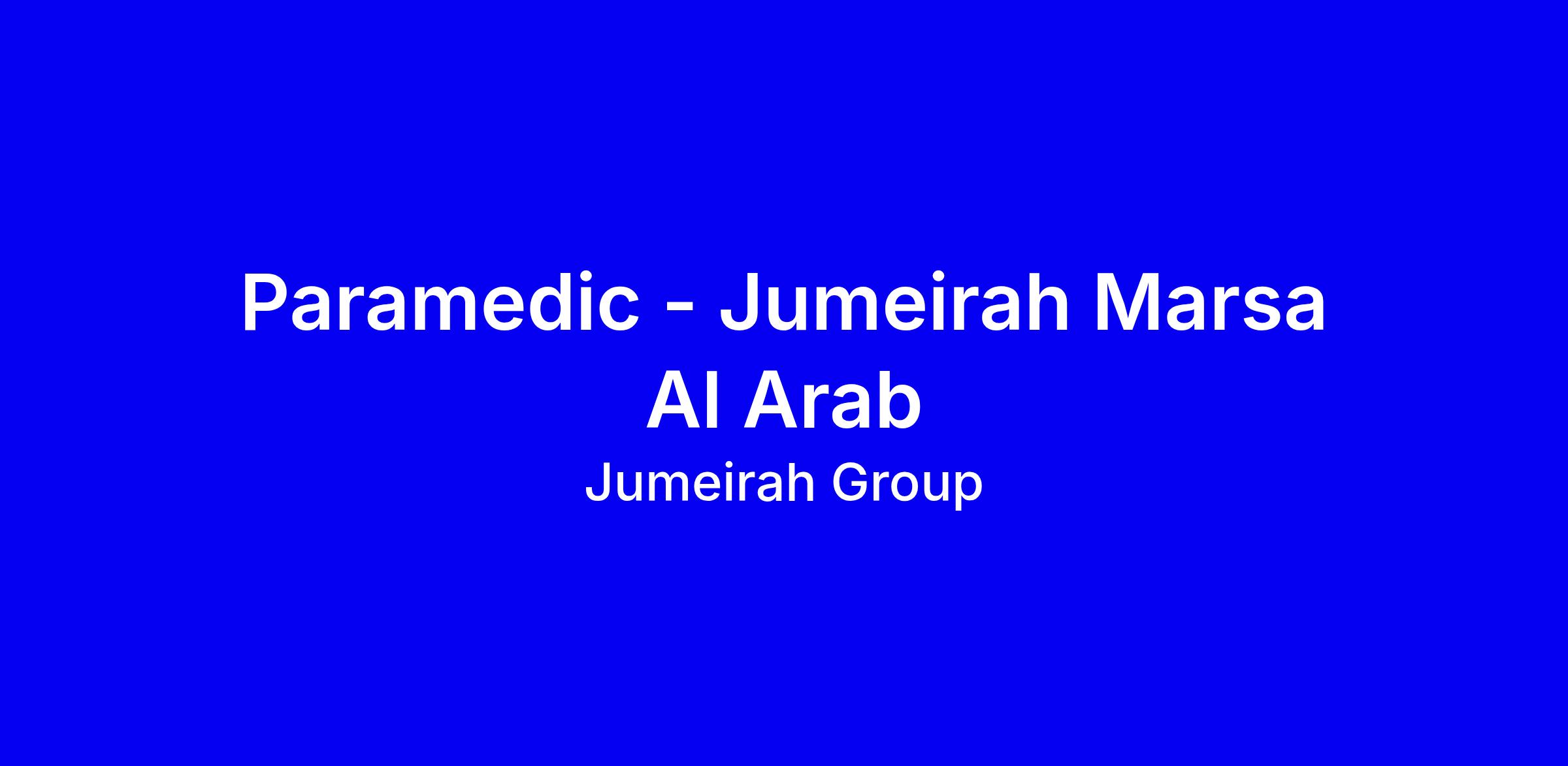 Jumeirah Marsa Al Arab in Dubai is seeking a full-time Paramedic to join its on-site medical team. You will provide rapid emergency response, life support, and first-aid care to guests and colleagues, assess conditions, initiate treatment per protocol, administer medications via oral, injection or IV routes, and maintain precise medical records in line with clinical, legal and H&S standards. You’ll also support guest and colleague well-being through preventive care and professional communication. The ideal candidate holds Certified AEA and CCA credentials with a valid emergency medical credential, a national diploma or country-specific medical certification, and a degree or certification in Emergency or Trauma Care, plus strong knowledge of emergency protocols and documentation. Benefits include housing, healthcare, flights, development, internal mobility, and colleague discounts. To apply, tailor your resume to highlight emergency care wins, guest safety focus, and compliance with standards, and ensure UAE work eligibility.