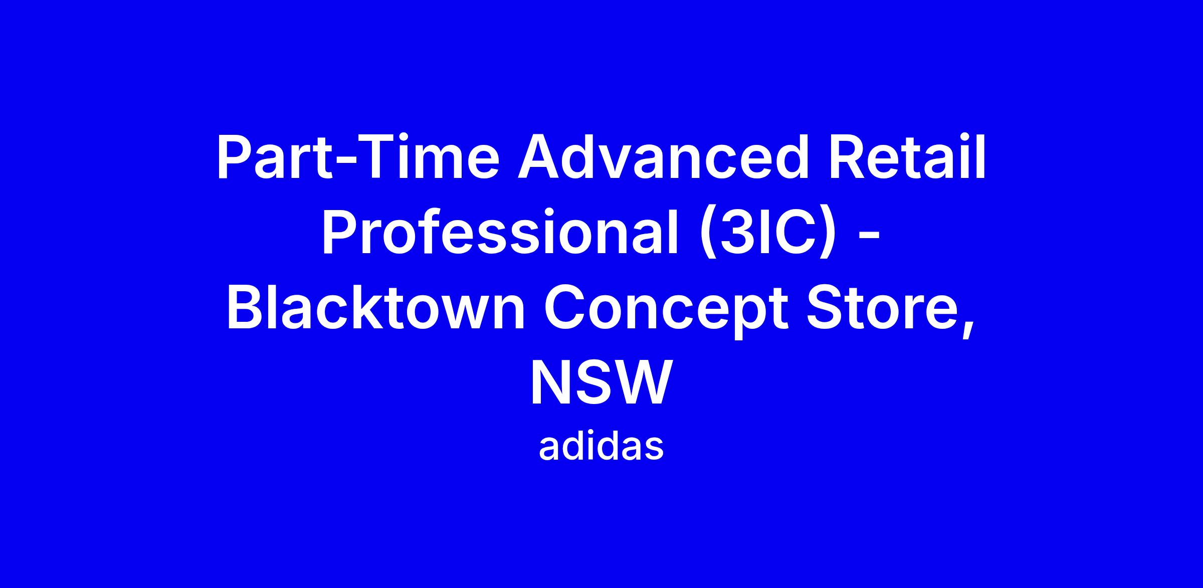 adidas is seeking a Part-Time Advanced Retail Professional (3IC) at Blacktown Concept Store. The role supports store leadership to hit targets and deliver exceptional customer experiences, lead and inspire the team, uphold brand values, maintain Visual Merchandising standards, and manage stock from backroom to floor, while training staff on service skills and product knowledge. Ideal candidates have Retail Team Leader experience in mens/womens apparel or sports footwear, plus Visual Merchandising and stockroom procedures. To apply, press Apply, complete the online form, and attach your resume and a cover letter addressing how you meet the requirements. Ensure you have permanent rights to work in Australia or NZ, and be prepared for pre-employment checks.