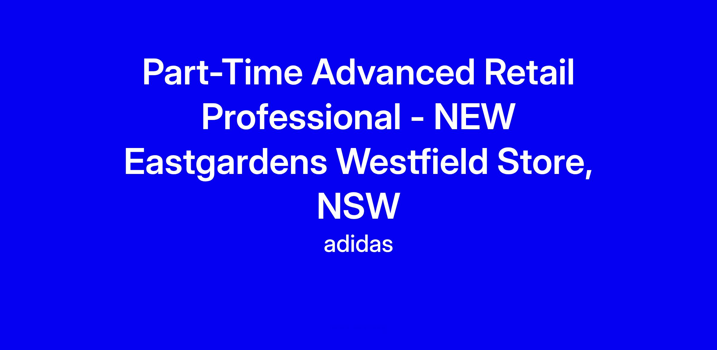 Adidas is recruiting a Part-Time Advanced Retail Professional (3IC) to help open and run its Westfield Eastgardens Sports Concept Store in Sydney on a fixed schedule with weekdays and at least one weekend day. The role supports the Store Manager to hit targets, deliver outstanding service, maintain standards, manage stock to floor, and coach the team on product knowledge. Retail Team Leader experience in apparel or footwear with VM and stockroom know-how is highly regarded. Benefits include salary, bonus, generous staff discounts, and career development. To apply, click Apply, tailor your cover letter to the requirements emphasizing leadership, customer service and stock management, then complete the online forms and attach your resume; permanent rights to work in Australia or NZ and a pre-employment check are required.